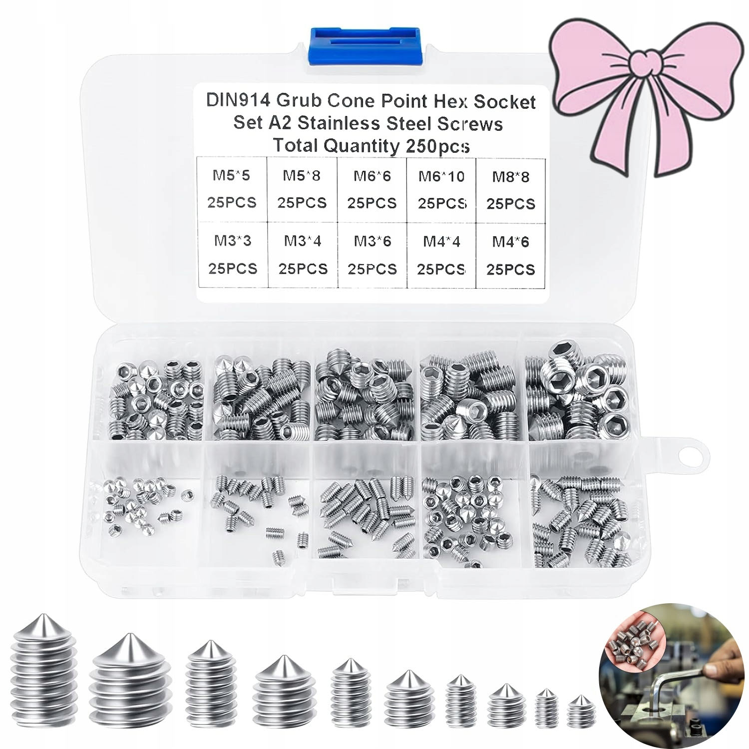 НАБІР ГВИНТІВ ДЛЯ ШЕСТИГРАННИКА ТА ГВИНТІВ ПРИТИСКУ 250 ШТ