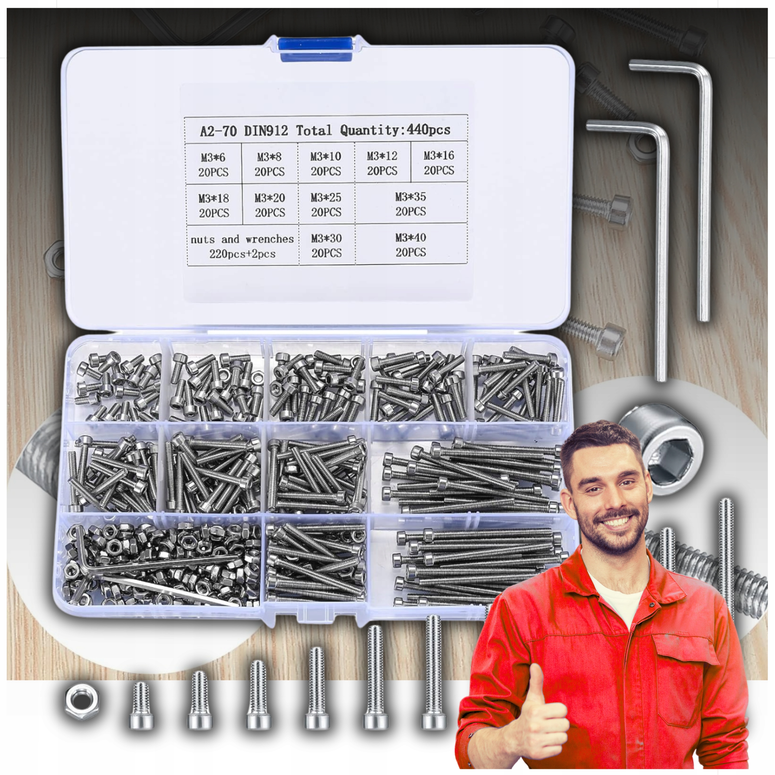 ZESTAW ŚRUB M3 NAKRĘTEK ZE STALI NIERDZEWNEJ 440SZT +IMBUS SOLIDNE!