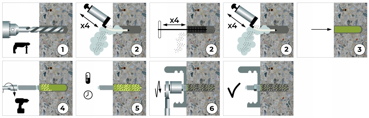 Високоефективний ін’єкційний розчин на основі вінілефірної смоли без вмісту стиролу для кріплення в бетоні.