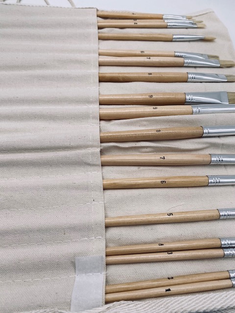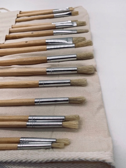 Ці професійні художні пензлі містять 18 штук пензлів із натуральної щетини в скручуваному футлярі. Довгі, легкі дерев’яні ручки мають ідеальний розмір для максимального комфорту та зручності утримання.