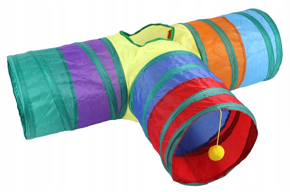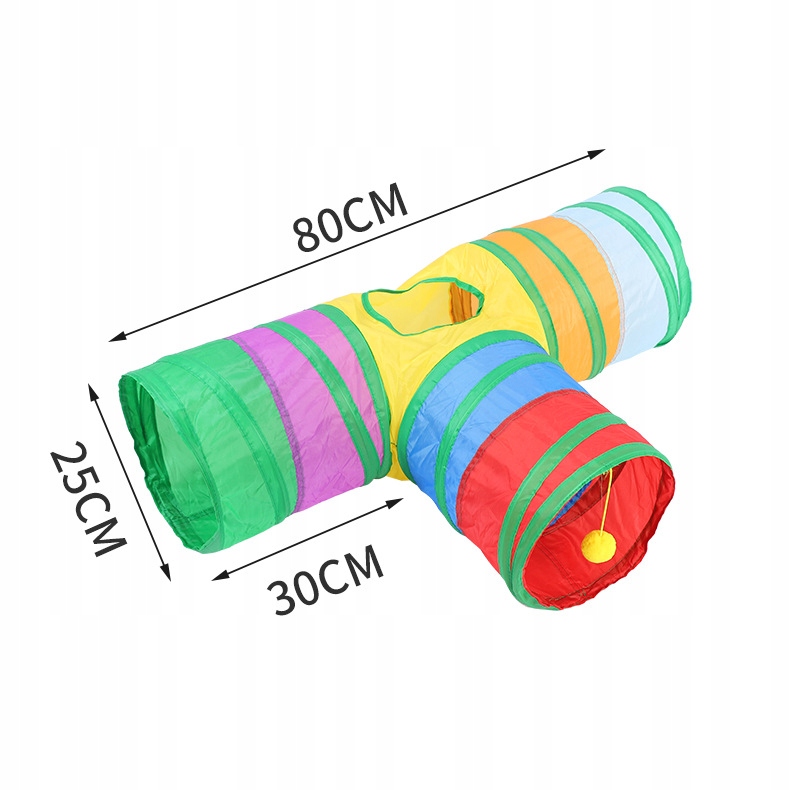 Барвистий тунель XL (80 × 25 × 30 см) із висячою кулькою – схованка, місце для гри та відпочинку.