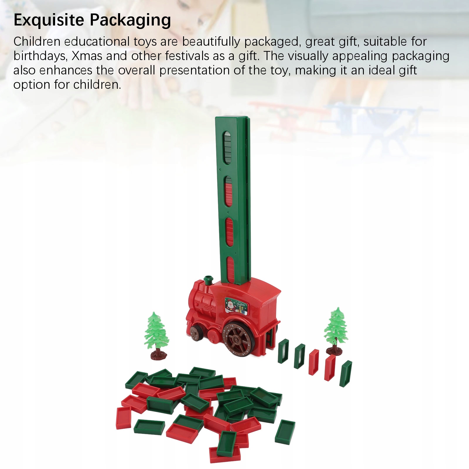 1. Автоматична дія: Автоматична дія, ATWE для нескінченних розваг у Доміно. Це не тільки розважає, але також допомагає розвивати навички логічного мислення дітей та вдосконалити їх практичні навички. Інноваційний дизайн: інноваційний дизайн, багатофункціональний електричний потяг може бути Dieo, надихнути дитячу творчість та уяву. Унікальний дизайн поїзда додає нових ігор у Доміно. Найвища якість: Доміно електричного поїзда ретельно виготовляється з найвищих матеріалів, безпечні та надає дітям години безперебійних розваг. Підходить для дітей старше 3 років. Вишукана упаковка: навчальні іграшки для дітей прекрасно упаковані, чудовий подарунок, придатний для дня народження, Різдва та інших фестивалів як подарунок. Візуально приваблива упаковка також покращує загальну презентацію іграшки, завдяки якій це ідеальний варіант подарунка для дітей. Взаємодія батьків та дітей: Ви можете взаємодіяти між батьками та дітьми, граючи з іграшками з поїзда Доміно, розвивати здатність дітей працювати в дітей та робити сімейний час цікавішим та затишним.