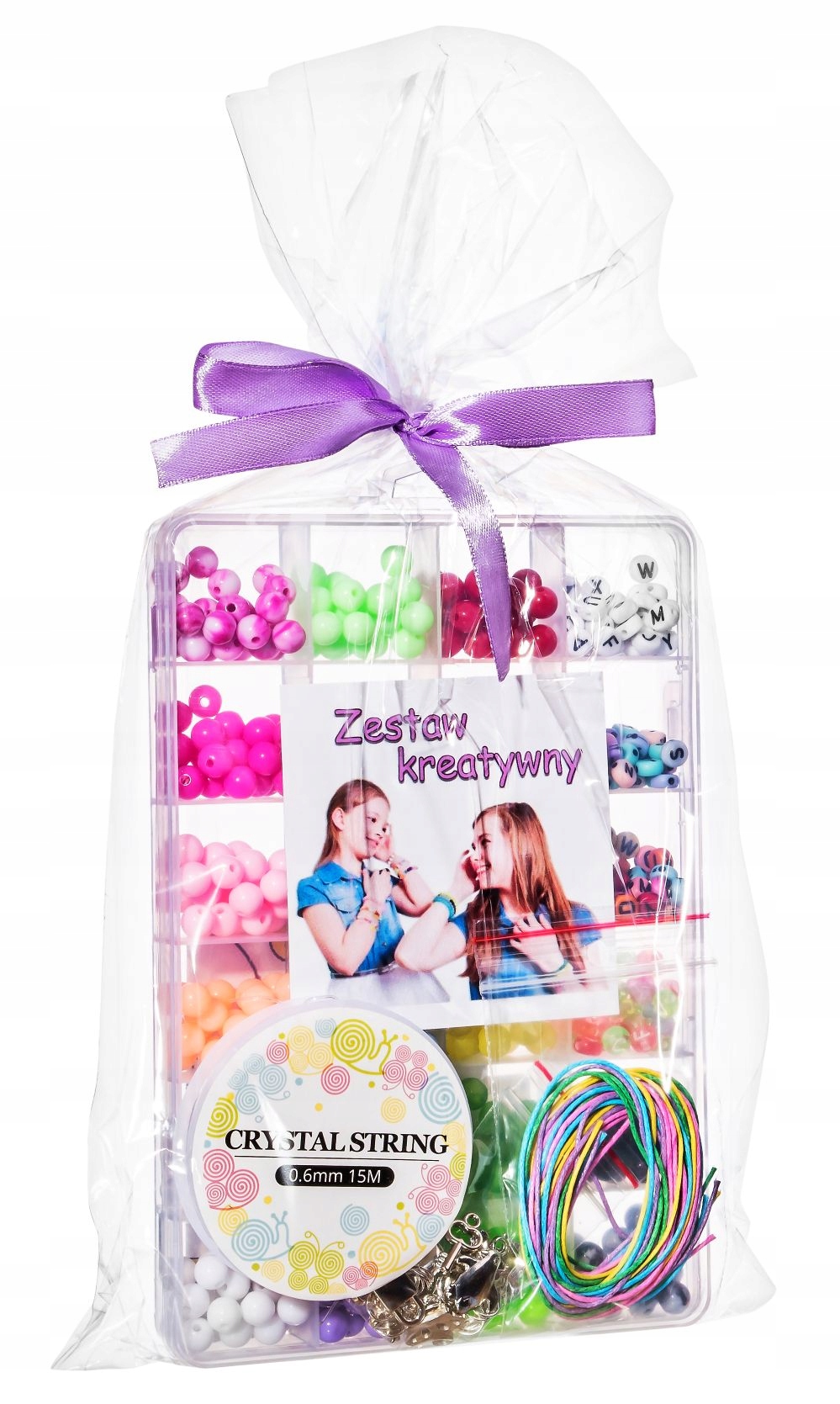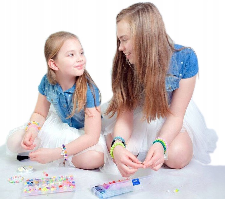 набір для виготовлення особистих браслетів на еластичній смузі, виготовленій з акрилових намистин. Набір включає в себе 24 -хамбер -організатор, наповнений різноколеними намистинами, підвісками, струнами, намистинами та гумкою на рулоні близько 10 метрів. Така велика кількість елементів створить чудові браслети з різними написами, прикрашеними кулонами.