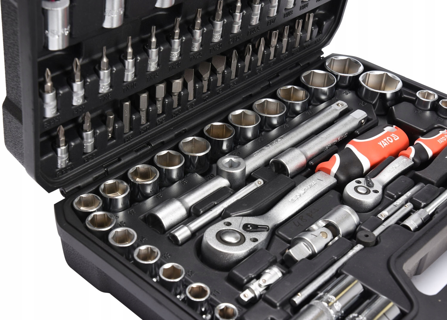 Набір Yato YT-12681 дозволяє працювати, яка потребує дуже великих навантажень та точності , дозволяє виконувати багато службових заходів, пов’язаних із відкрученням та викручуванням різьбових з'єднань різних номінальних розмірів.