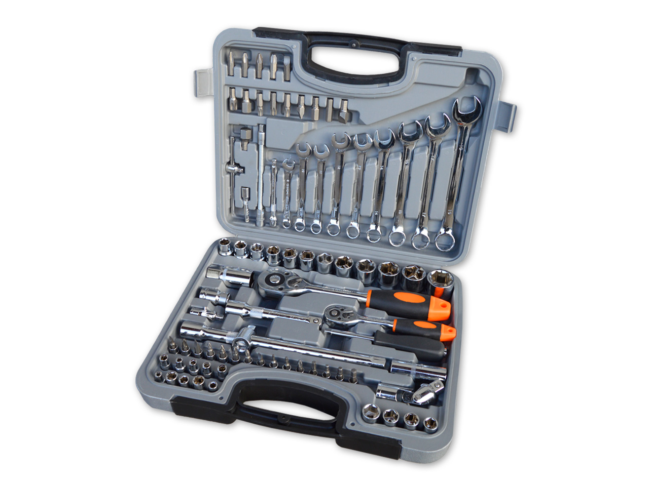 Практичний набір інструментів, який складається з 79 елементів, поміщений у зручну валізу. Компоненти набору виготовлені з високоякісної хромованадієвої сталі та згруповані відповідно до застосування.
