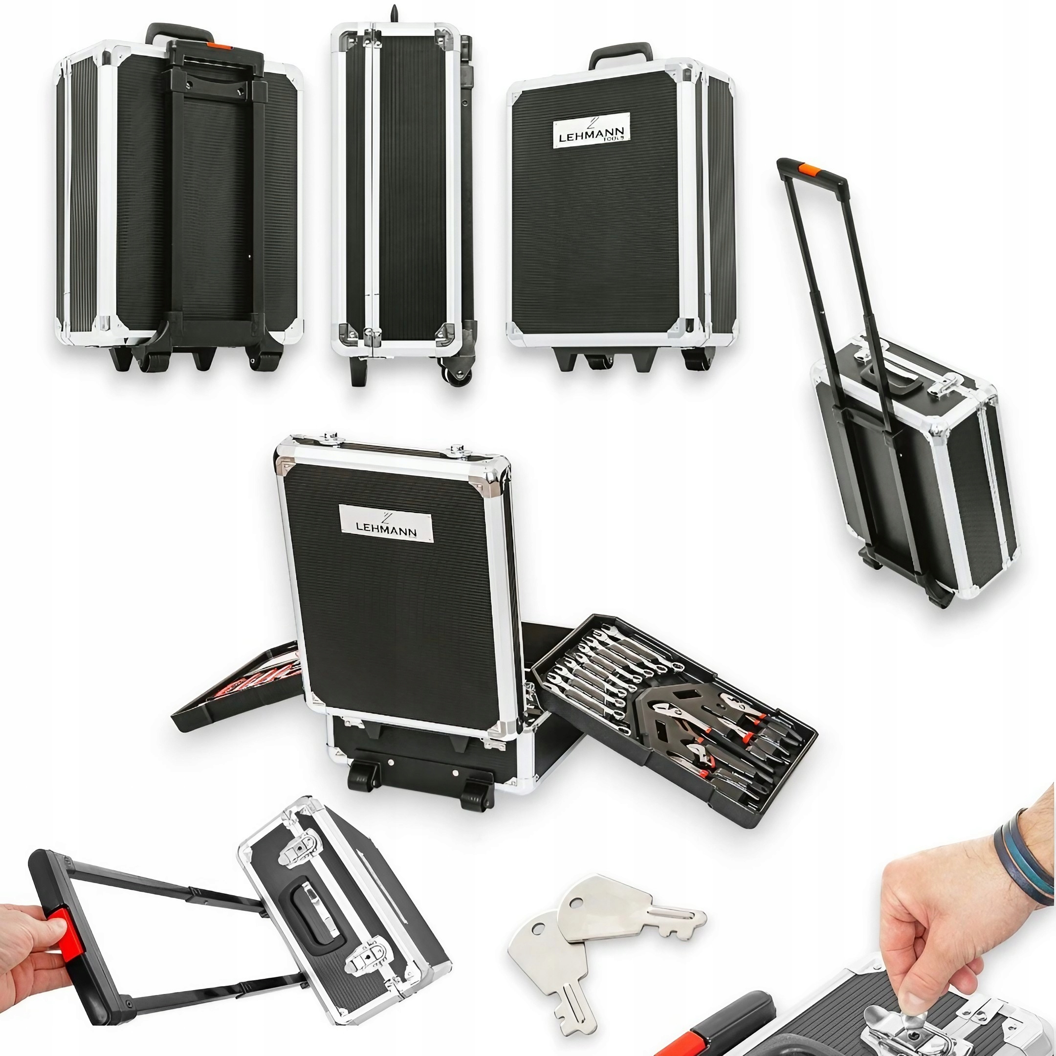 ➡️ Ідеально підходить для механіків, майстрів і любителів. Валіза з чотирма органайзерамидля інструментів із аксесуарами компактної форми обладнаноюколіщатками для зручного та легкого транспортування всіх інструментів.