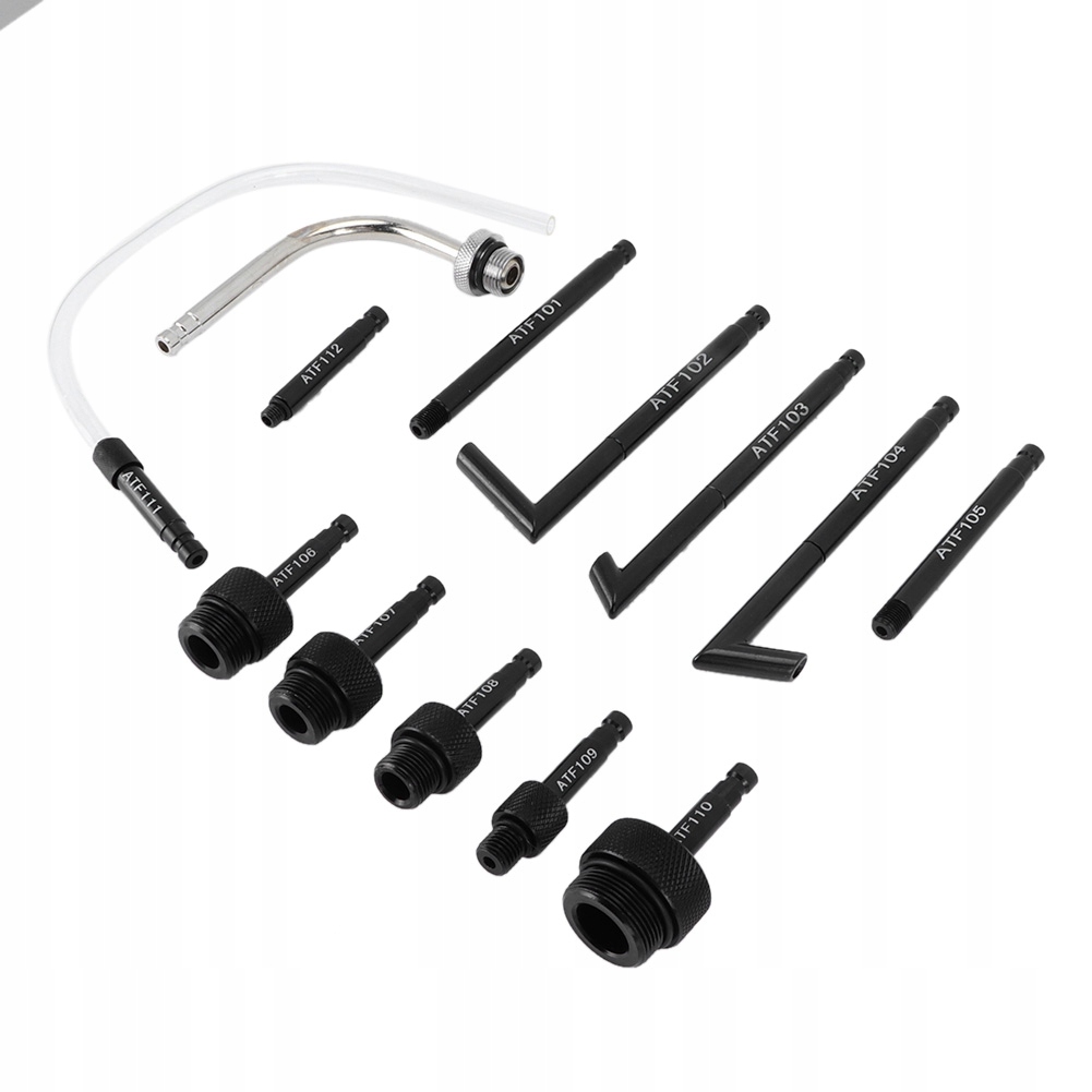 1,13 шт. Високоякісного адаптера для наповнення трансмісійним маслом 2. Виготовлено з преміальної вуглецевої сталі, стійке до корозії та довговічне 3. Висока міцність, висока твердість, його нелегко деформувати та надійний у використанні 4. Включає коробку для зберігання та футляр, зручний для зберігання та транспортування 5. Включає різноманітні адаптери, які відповідають вашим потребам, зручні та практичні у використанні