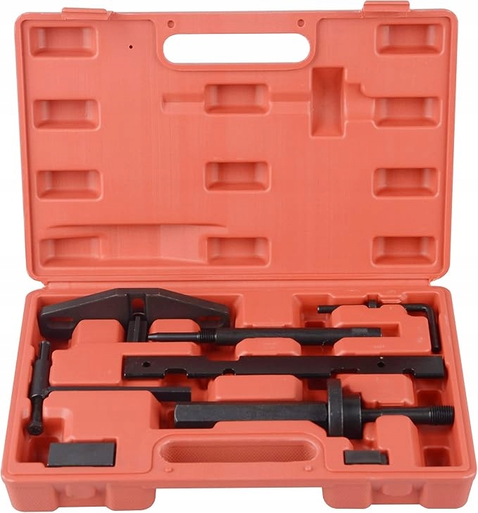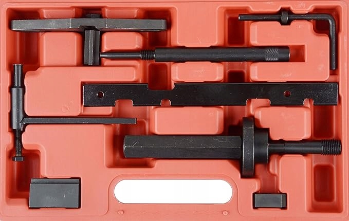 Професійний набір інструментів, призначених для налаштування ГРМ у дизельних двигунах Ford 1.8 TDDi та 1.8 TDCi. Забезпечує точне блокування розподільних валів, колінчастого вала та вирівнювання компонентів системи газорозподілу під час обслуговування або заміни ланцюга, мокрого ременя або шестерні. Набір істотно полегшує правильний ремонт приводу.