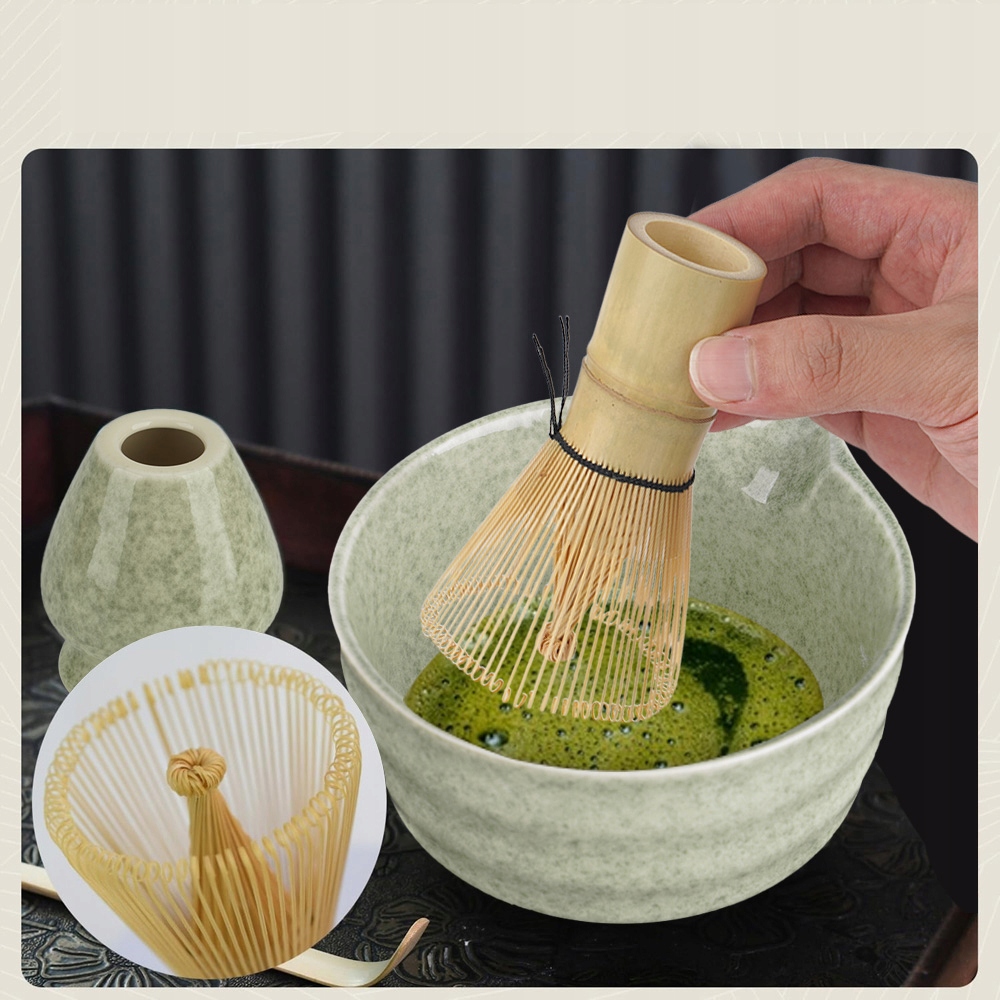 Віночок з високоякісного бамбука забезпечує м'який і ніжний чай матча, а керамічна підставка для віночка та чаша додають елегантний акцент чайному сервізу.