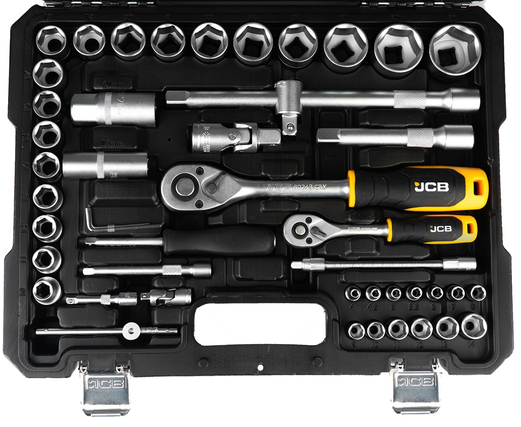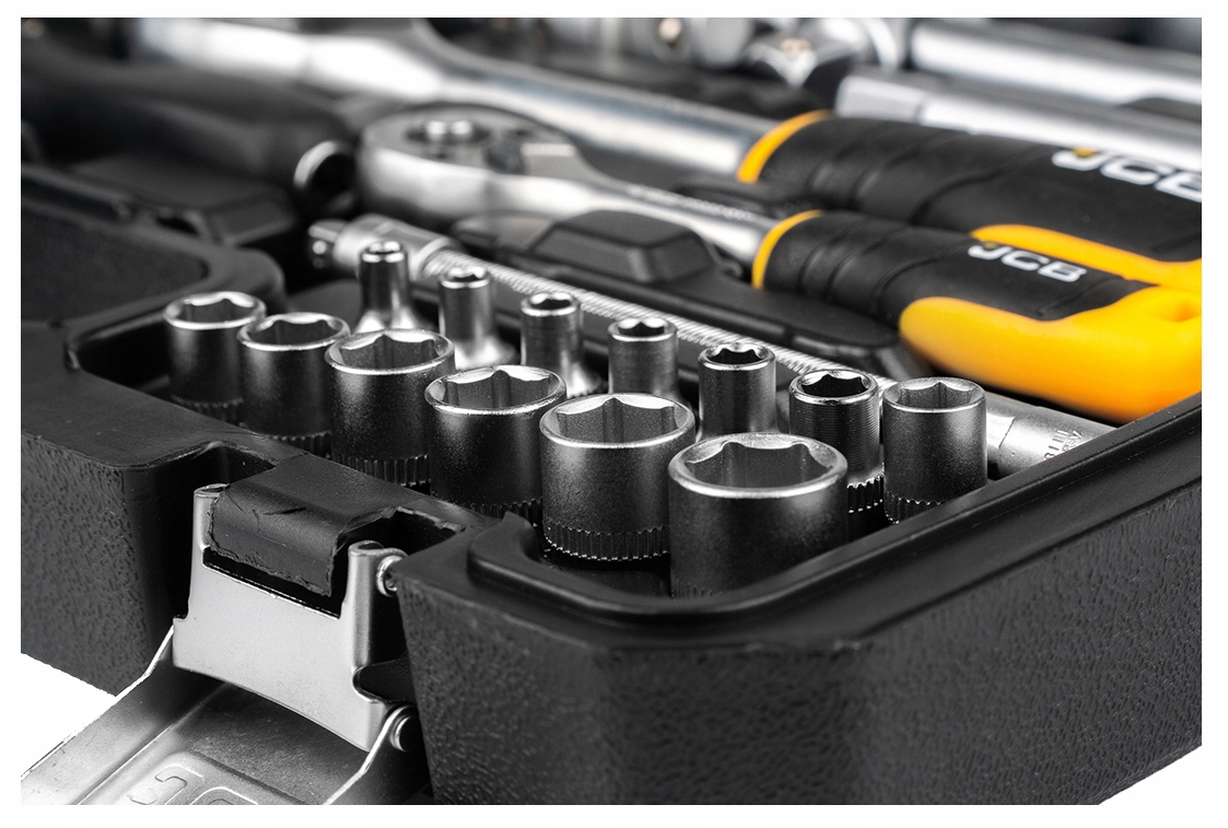 На відміну від дешевих наборів ключів, елементи в наборі JCB не випадають зі своїх місць, а застібки міцно утримують складену валізу та запобігають її випадковому відкриванню, наприклад, у багажнику.
