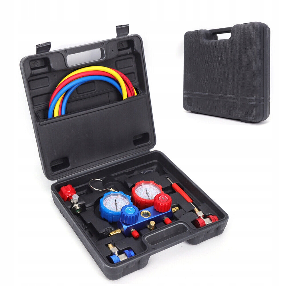 Цей повний набір манометрів і клапанів розроблено для заповнення та діагностики автомобільних і промислових систем кондиціонування повітря. Підходить для таких популярних холодоагентів, як R134a та R410a.