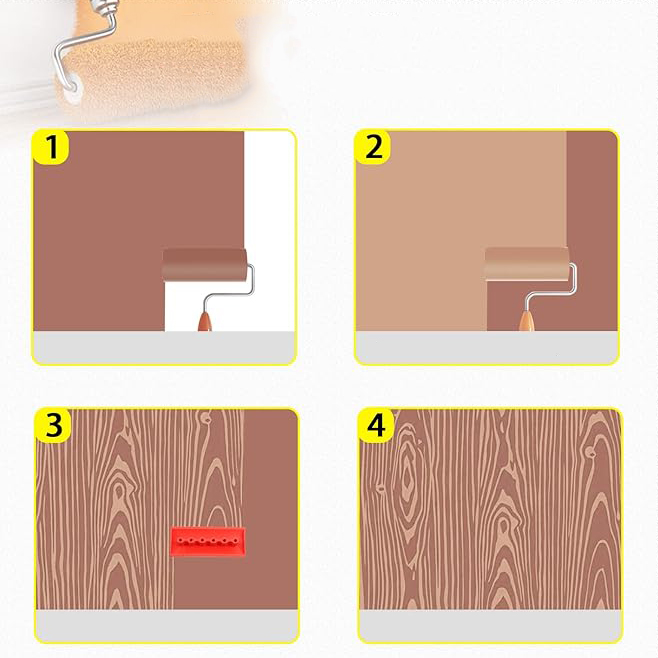 🏠Деревне зерно на поверхні чітке та делікатне. Спочатку на поверхню, що декорується, нанесіть ґрунтовку, що імітує структуру деревини, дочекайтеся висихання ґрунтовки, а потім нанесіть фінішне покриття. Потім, до повного висихання верхнього шару, просто перемістіть інструмент, щоб імітувати структуру деревини. Всього за кілька хвилин ви зможете створити унікальну текстуру .