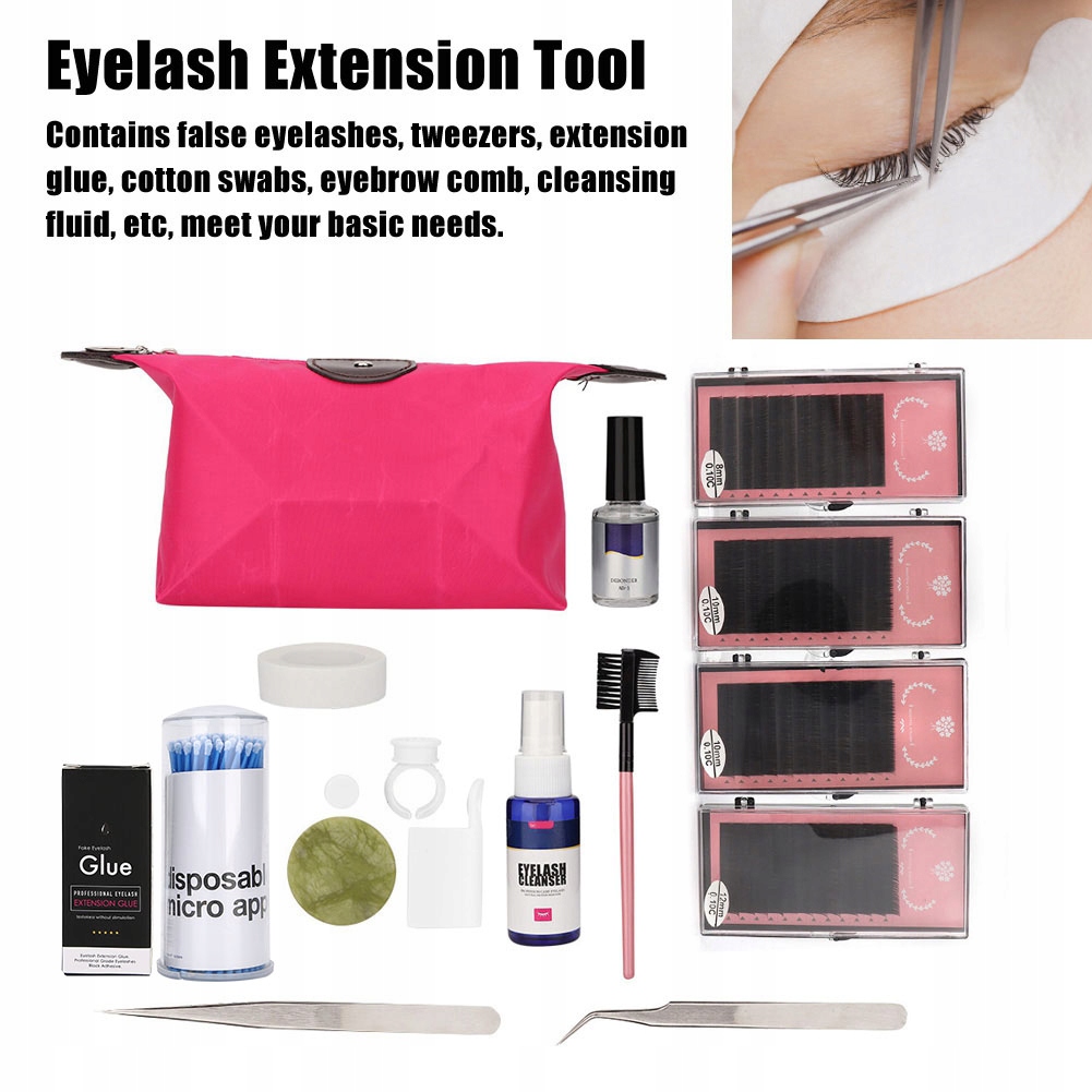 1. Містить накладні вії, пінцет, клей для нарощування, ватні палички, гребінець для брів, рідину для очищення тощо, що відповідає вашим основним потребам.