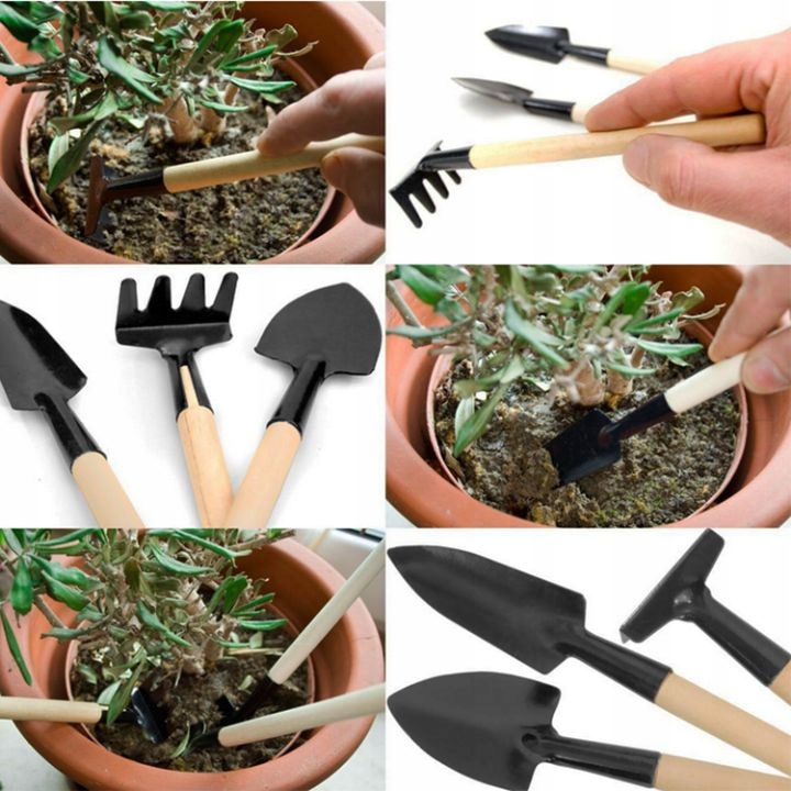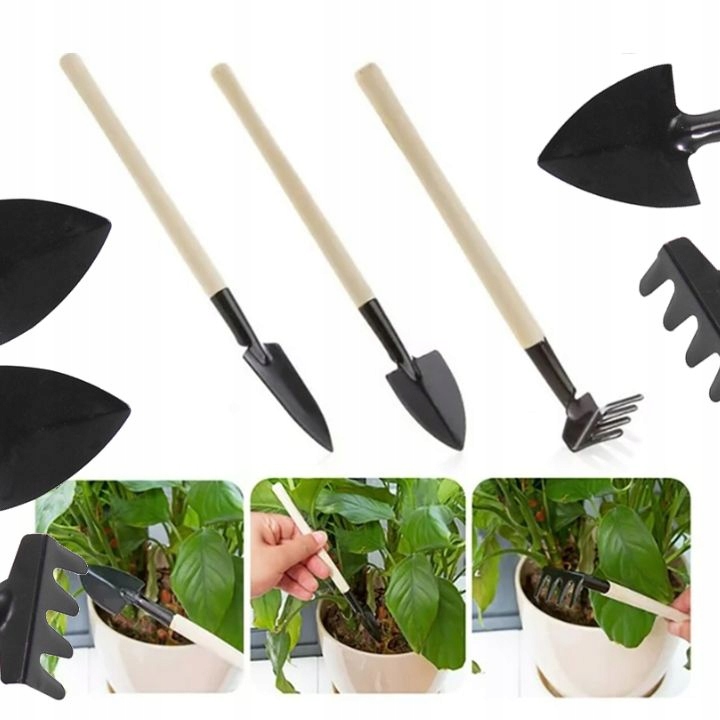 У набір входять три найпопулярніші садові інструменти: лопата, граблі та пікет. Кожна з них розроблена для полегшення пересадки рослин, обрізки молодих саджанців і внесення незначних коригувань у горщики. Завдяки компактним розмірам інструменти зручні у використанні та легко зберігаються.