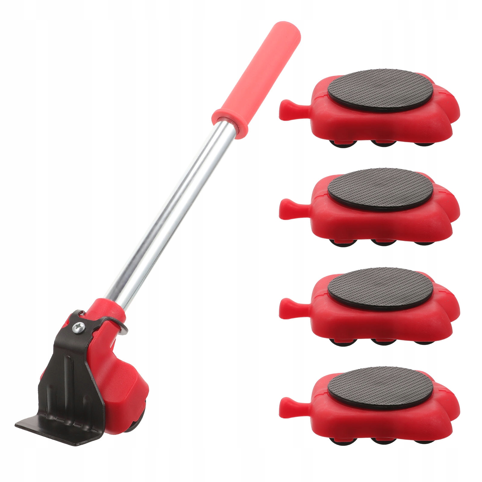 Набір підйомних інструментів із 5 предметів, повзунок, інструмент для переміщення важких меблів і техніки, включаючи 1 підйомну планку та 4 ролики для переміщення меблів (червоні)