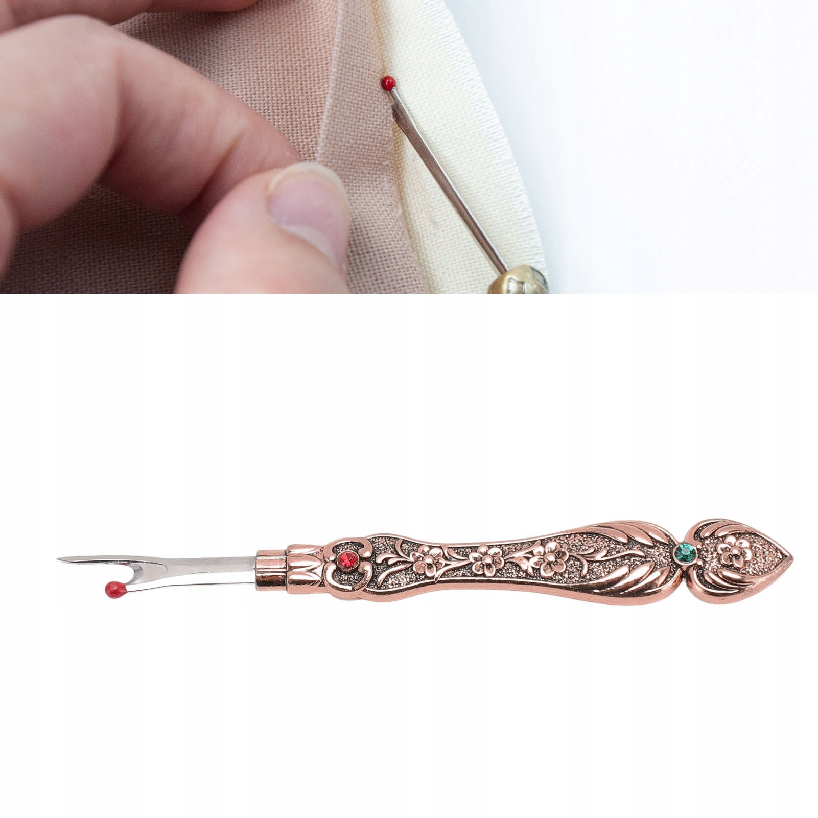 Функція: 1. Безпечний у використанні: Наш інструмент для видалення вишивки має невелику червону кулю в кінці, який захищає тканину від випадкових пошкоджень. Набір також включає невеликий шланг, який охоплює інструмент, коли він не використовується для запобігання випадкових пошкоджень.