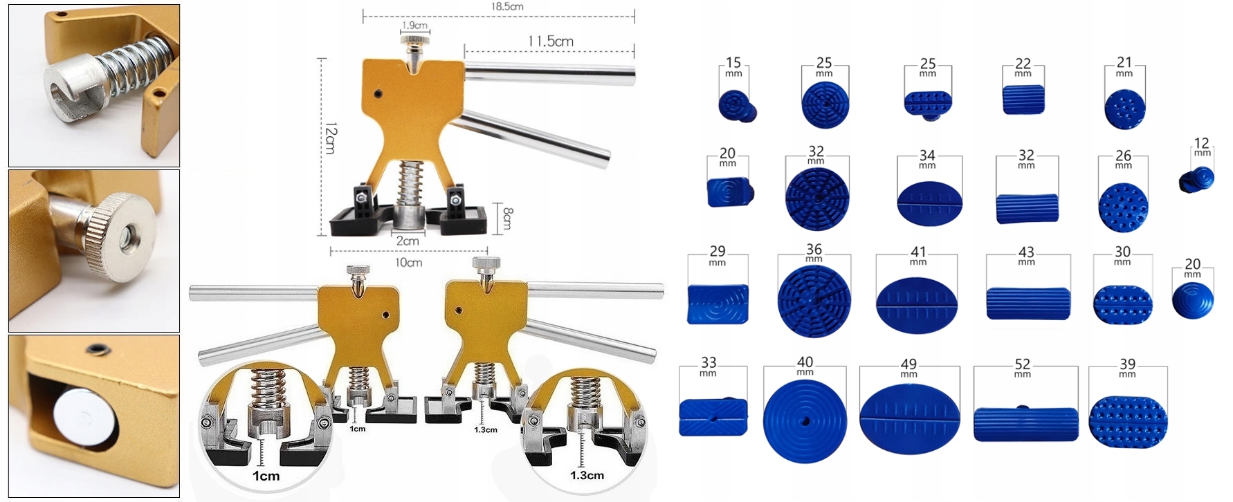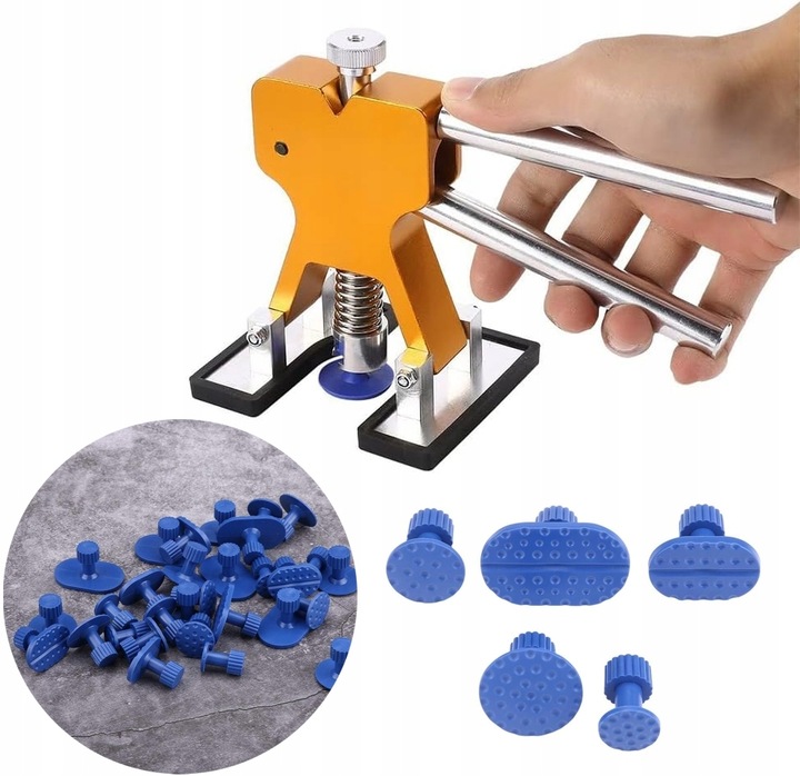 - Відповідна форма адаптерів дозволяє використовувати набір для видалення різних типів і вм’ятин