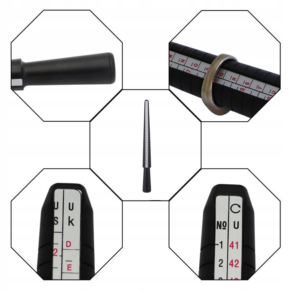 Вимірювальний інструмент має чіткі та точні шкали розмірів у Великобританії та США, а шпильки для каблучок позначені чотирма одиницями: UK, EUR, US і HK, що дозволяє ідеально підібрати розмір.