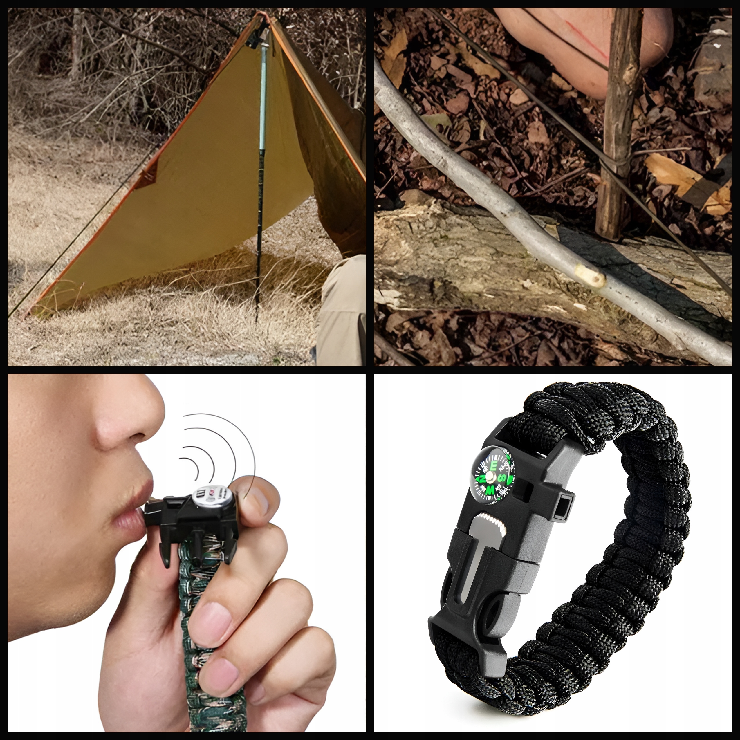Незамінний браслет виживання 5-в-1, незамінна частина спорядження для тих, хто цінує готовність до будь-яких негараздів під час пригод на природі.