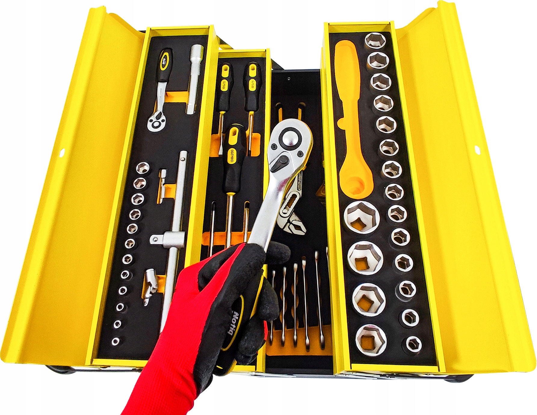 Трьохрівневий складаний ящик для інструментів, виготовлений з матеріалів найвищої якості. Ідеально підходить для будь-якої професійної майстерні, а також для домашнього гаража. Інструменти зі спеціально розробленим тисненням, щоб ви могли легко знайти те, що вам потрібно.