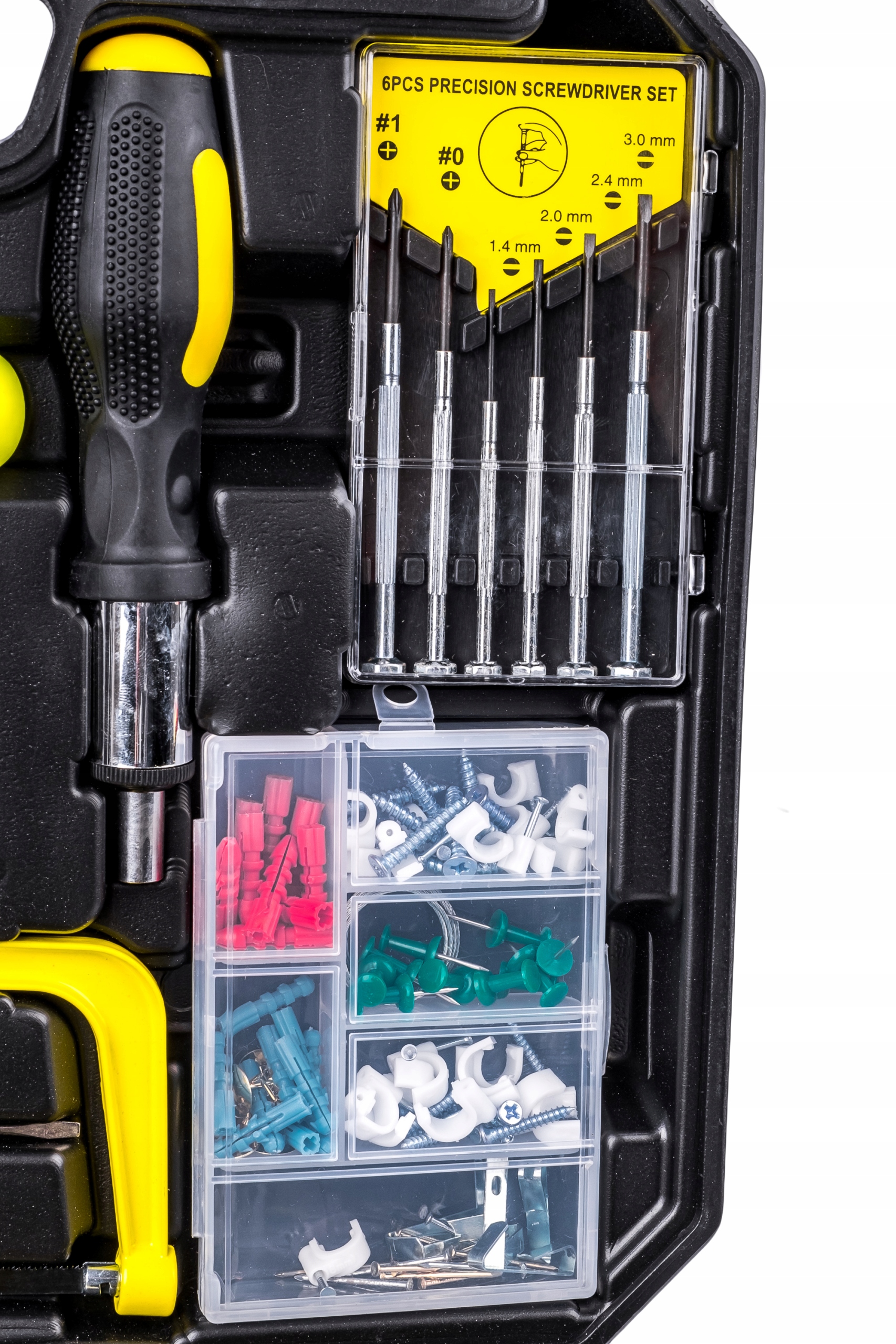 Набір поміщений у дуже міцний та ергономічний пластиковий футляр, що дозволяє легко переносити та зберігати інструменти