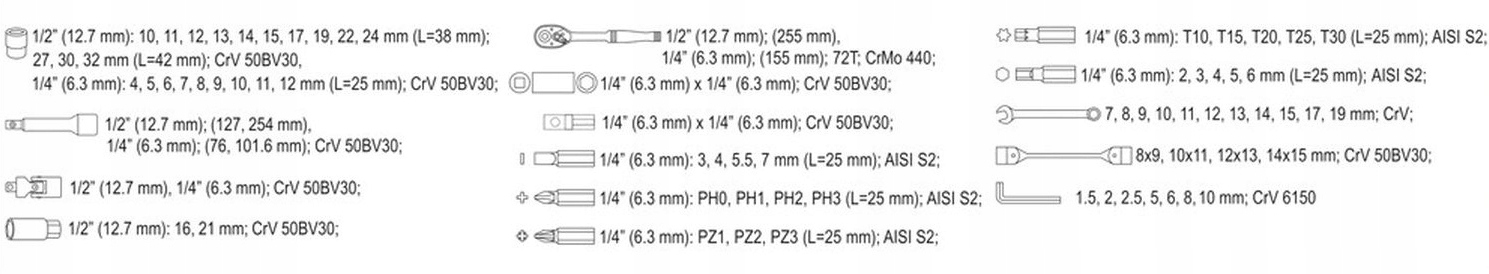 НАБІР ІНСТРУМЕНТІВ ГАЙКОВІ КЛЮЧІ ВИВІРТКИ ХРАПОВИКИ БІТИ ГОЛОВКИ YATO