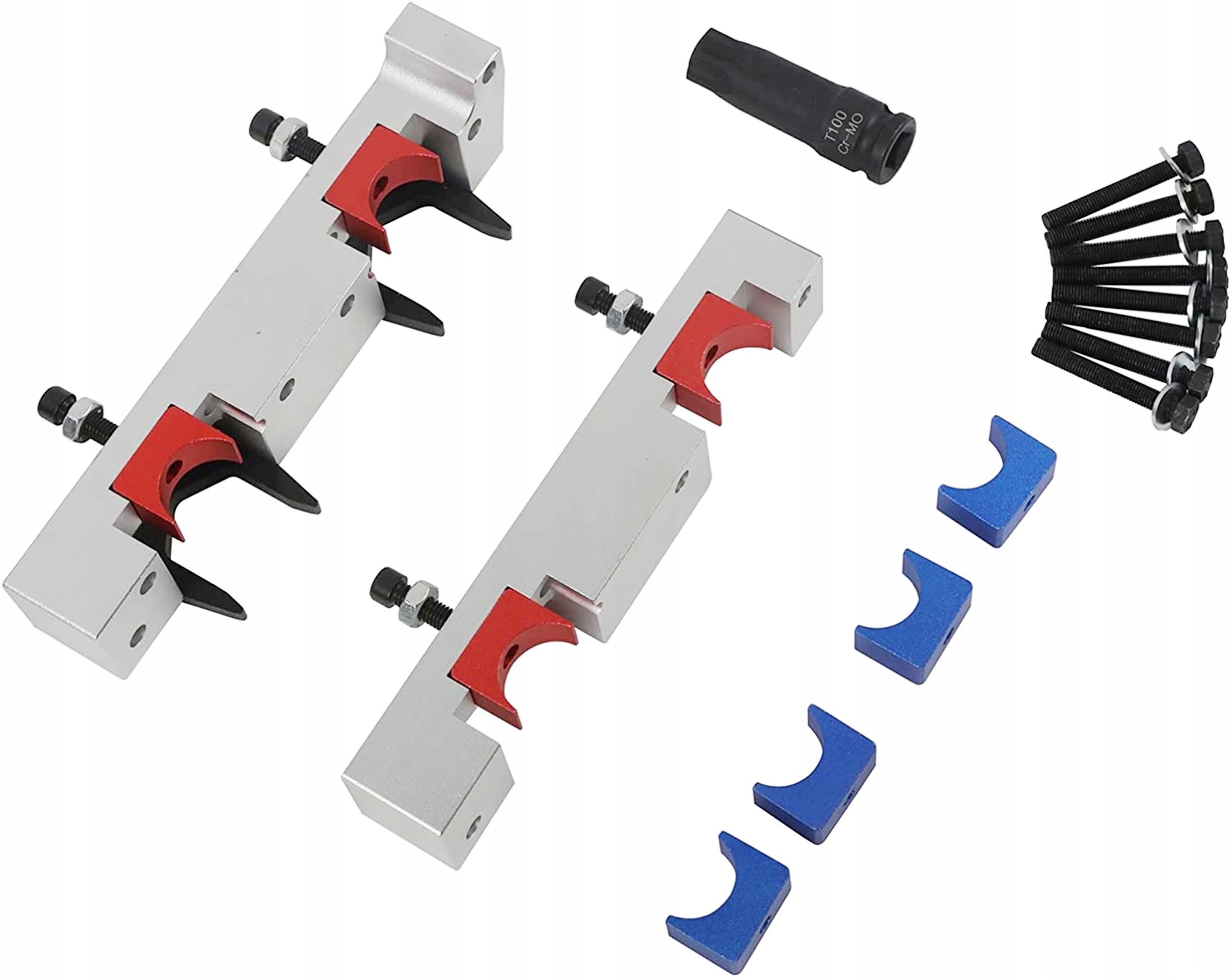 Набір призначений для установки розподільного вала у положення ВМТ (верхня мертва точка) в двигунах Mercedes-Benz з безпосереднім уприскуванням бензину 1.6/2.0, оснащених ланцюгом ГРМ. Набір дозволяє тримати та кріпити розподільний вал, а також відкручувати та затягувати болти кріплення шестерень розподільного вала.