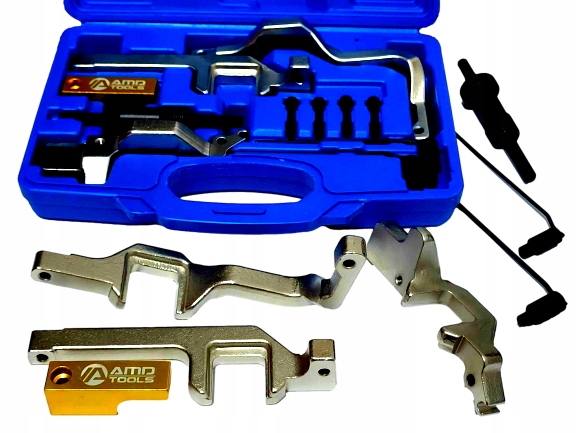 ⭐ Професійний замок AMD TOOLS призначений для двигунів, що встановлюються в автомобілі BMW Mini і PSA з подвійним розподільним валом і ланцюгом ГРМ з подвійним розподільним валом в бензинових двигунах. Набір включає, серед іншого: натягувач ланцюга, блокування маховика та розподільного валу ⭐