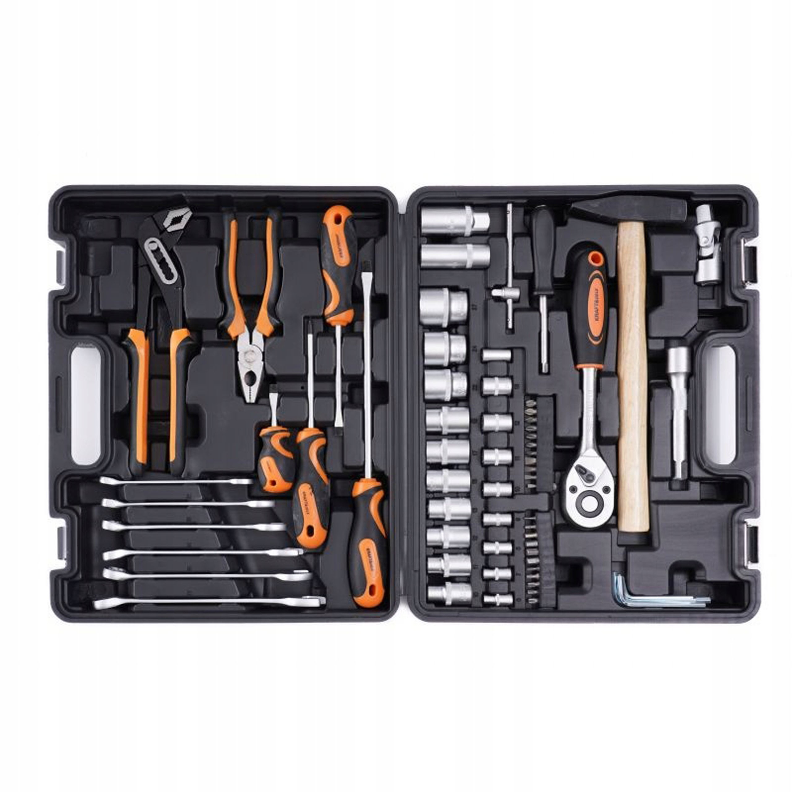 Набір містить аж 66 ретельно відібраних інструментів, які полегшують вам виконання різноманітних завдань. Ви знайдете гайкові ключі, викрутки, головки, насадки, плоскогубці, плоскогубці та молоток – усе необхідне поміщається в одній валізі. Кожен елемент має своє місце, що допомагає зберігати порядок і прискорює роботу. Завдяки цьому ви можете працювати якісно та результативно, не витрачаючи час на пошук потрібного інструменту. Це практичне рішення, яке добре працюватиме вдома, в гаражі та майстерні.