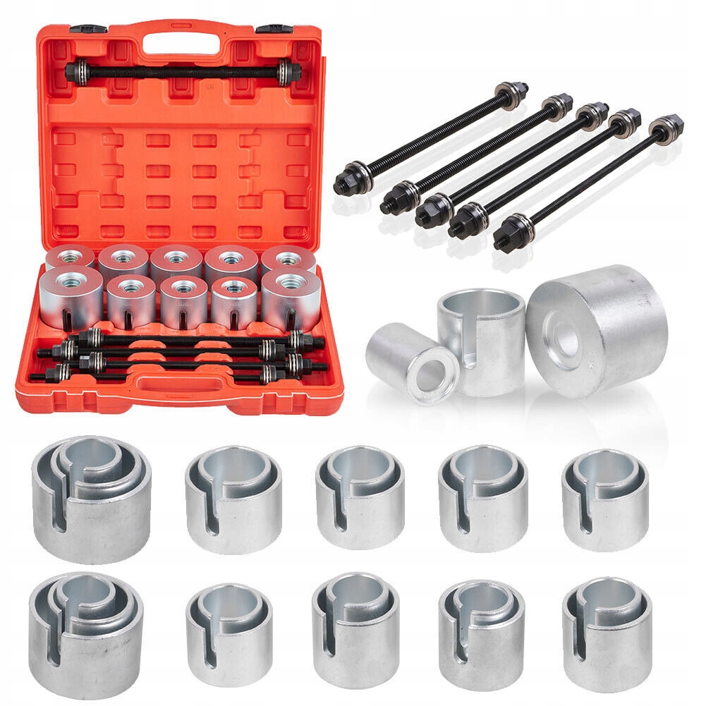 Набір використовується для монтажу та демонтажу підшипників і втулок. Гвинтові преси та адаптери в комплекті. Все в елегантній валізі.