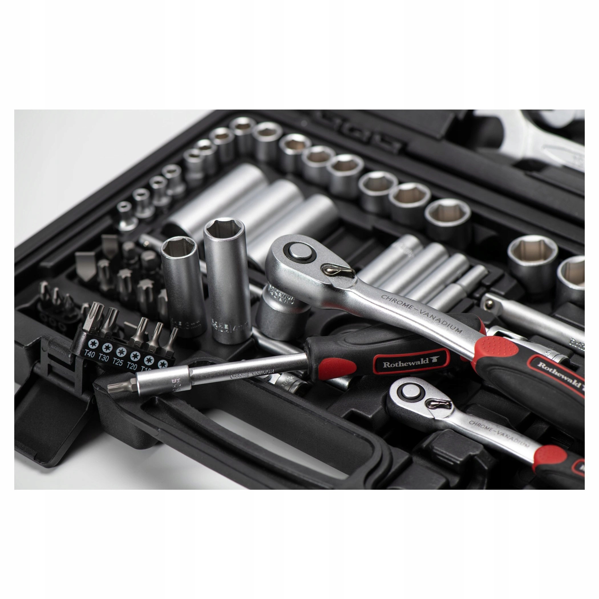 Rothewald — надійні, міцні інструменти для будь-якого випадку. Незалежно від того, чи це мотоцикл, машина, велосипед, дім чи хобі – вас завжди добре «обслуговують різноманітні помічники». Цей метричний набір інструментів із 92 частин підкреслює гарну якість і продуманий склад Rothewald. Він виготовлений із матової хромованадієвої сталі та безпечно зберігається в ударостійкому корпусі.