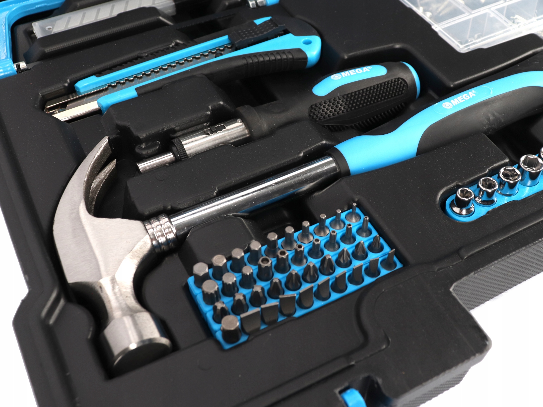 Набір ручних інструментів Mega ідеально підходить для домашньої роботи, монтажних робіт або роботи в невеликій майстерні.