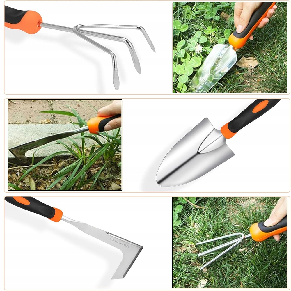 Наш набір інструментів для садівництва виготовлений з потовщеної нержавіючої сталі, ручки стійкі до випадання та розтріскування, а інструменти залишаються у хорошому стані навіть після тривалого періоду використання. Використання та зберігання: