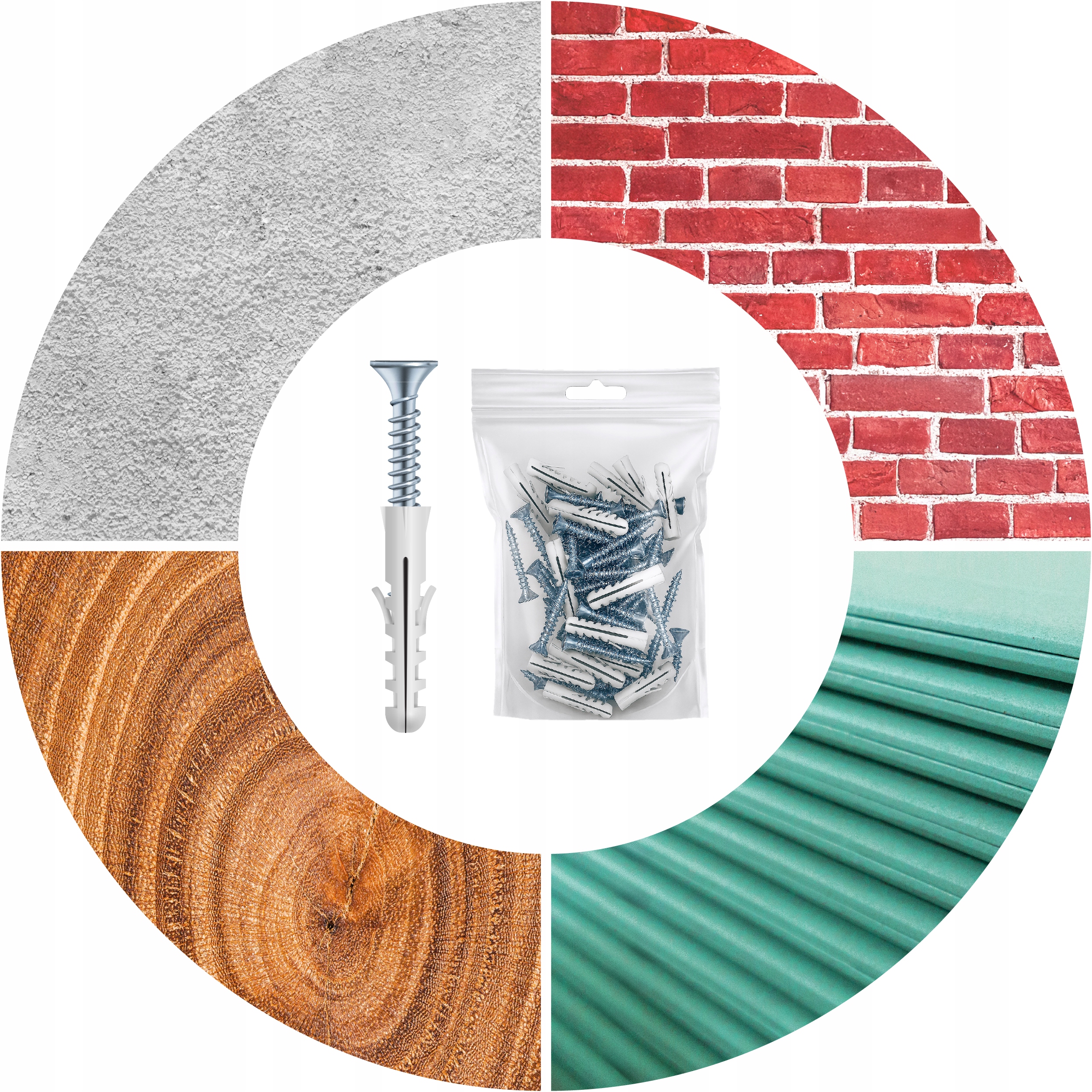 Розширені пробки в наборі ідеально підходять для монтажу на різних поверхнях, таких як: