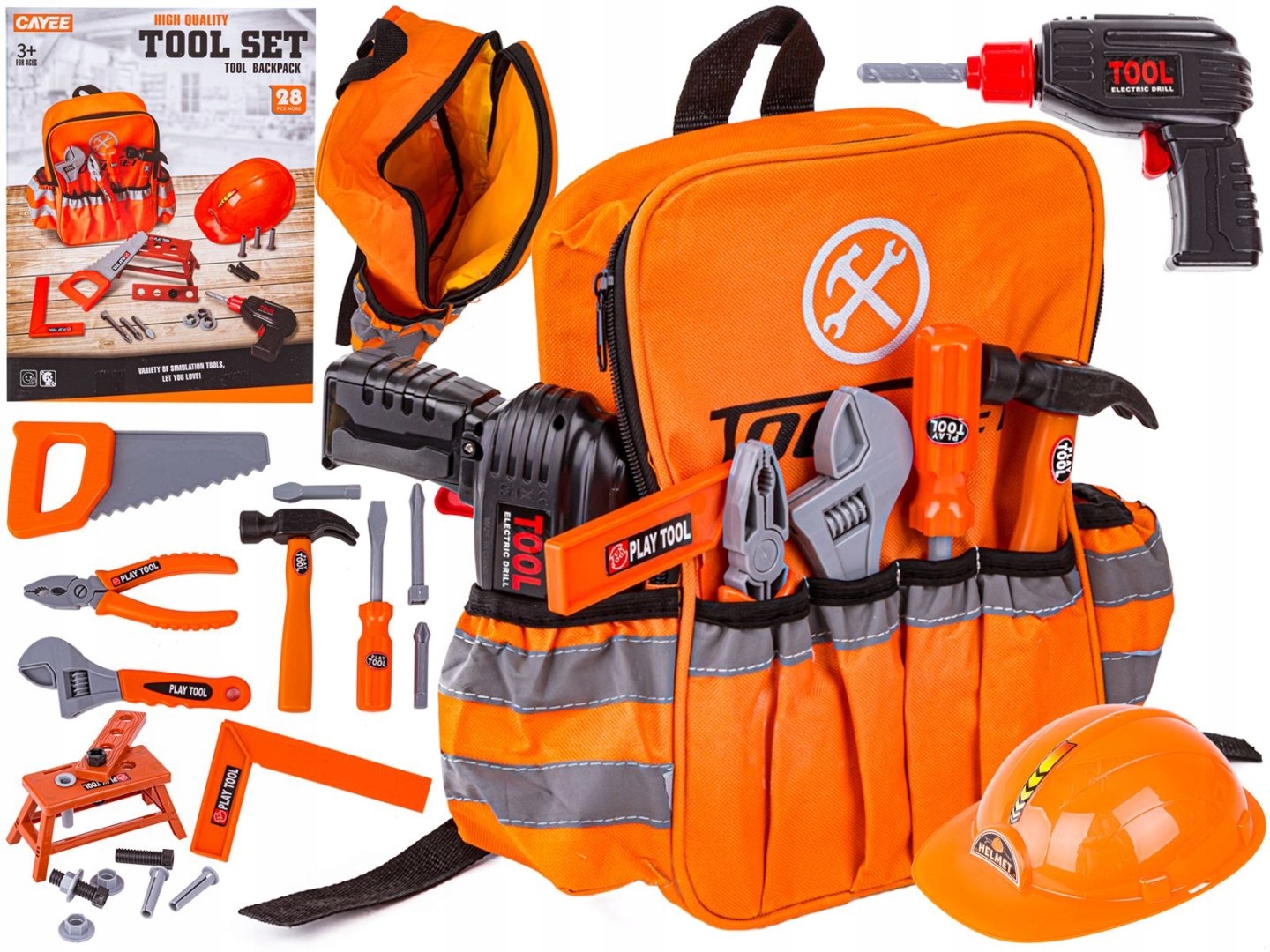 Набір інструментів з рюкзаком, свердлом викрутки, інструментами, шоломом, аксесуарами