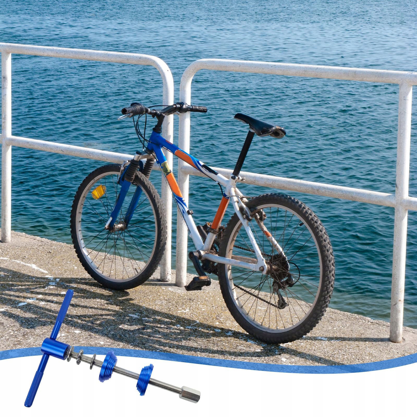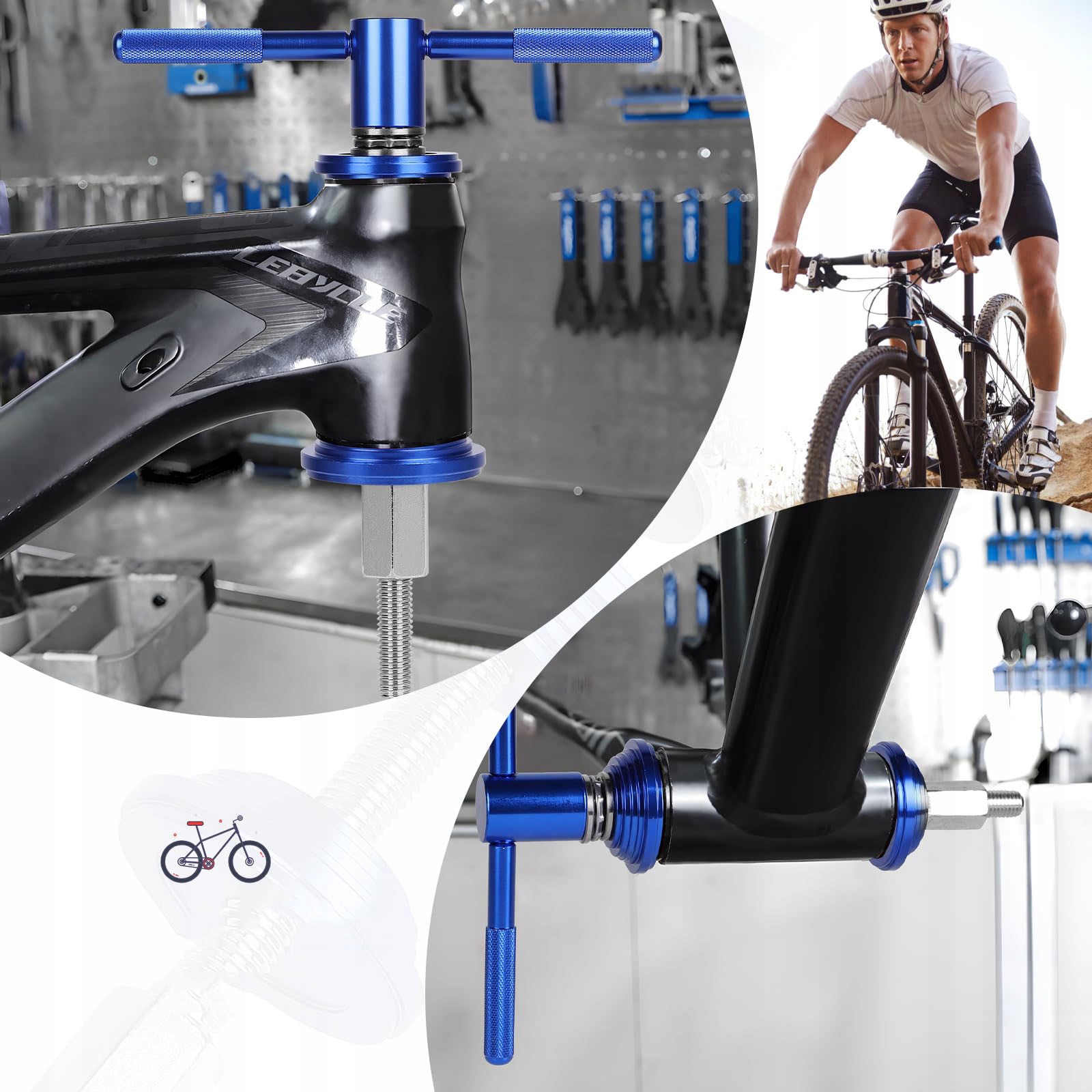 Цей інструмент для затягування підшипника підходить для більшості велосипедних руддерів та деяких натискань на нижній кронштейн велосипеда, доступні на ринку. На передній частині прес -блоку є різні розміри для вставки велосипедних рум'яних руд, а велика площа ззаду підходить для пресів для підтримки.