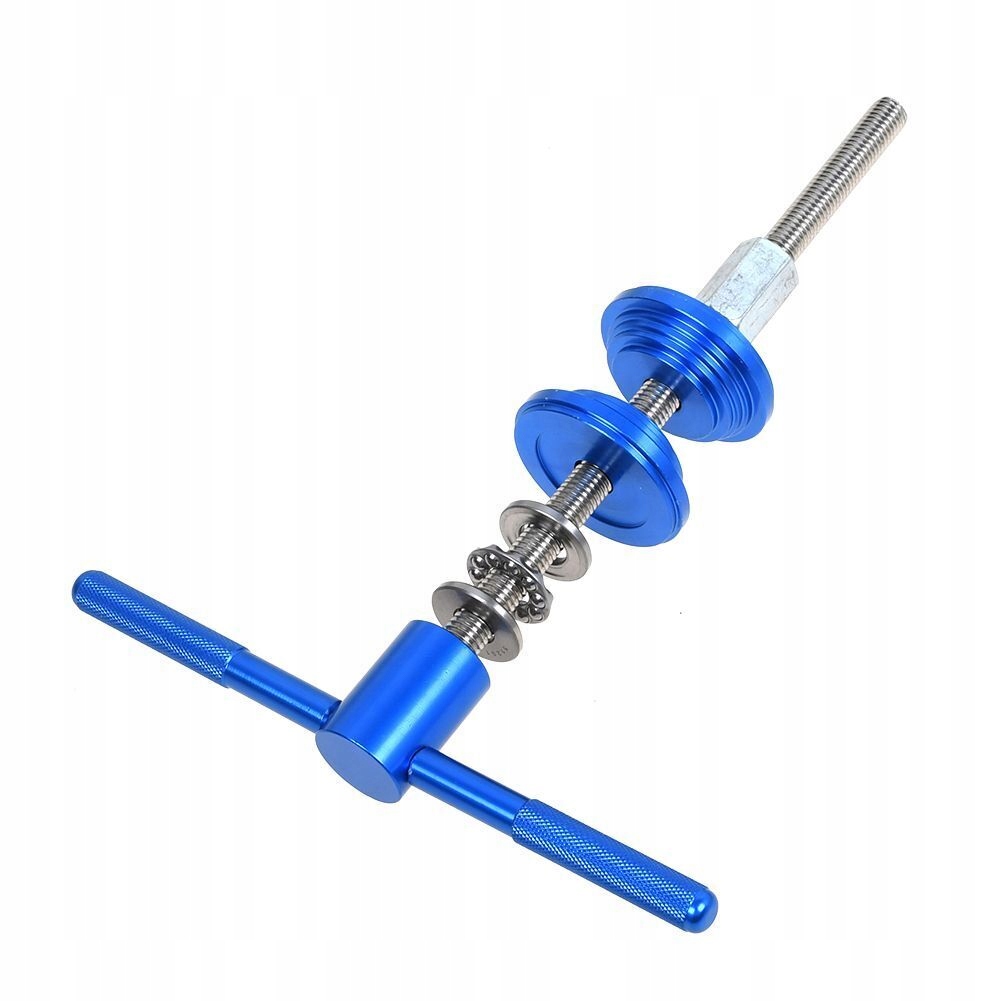 Цей інструмент для затискаючих велосипедних рудерів оснащений плоскими підшипниками опору з обох боків блоку преси. Зберігайте ручку обома руками і повільно натисніть, щоб завершити установку. · Коли встановлення, використовуйте ключ, щоб утримувати гайку під ним, щоб запобігти його обертанню. · Під час встановлення завжди перевіряйте, чи нахилений підшипник і негайно відрегулюйте його, щоб уникнути пошкоджень.