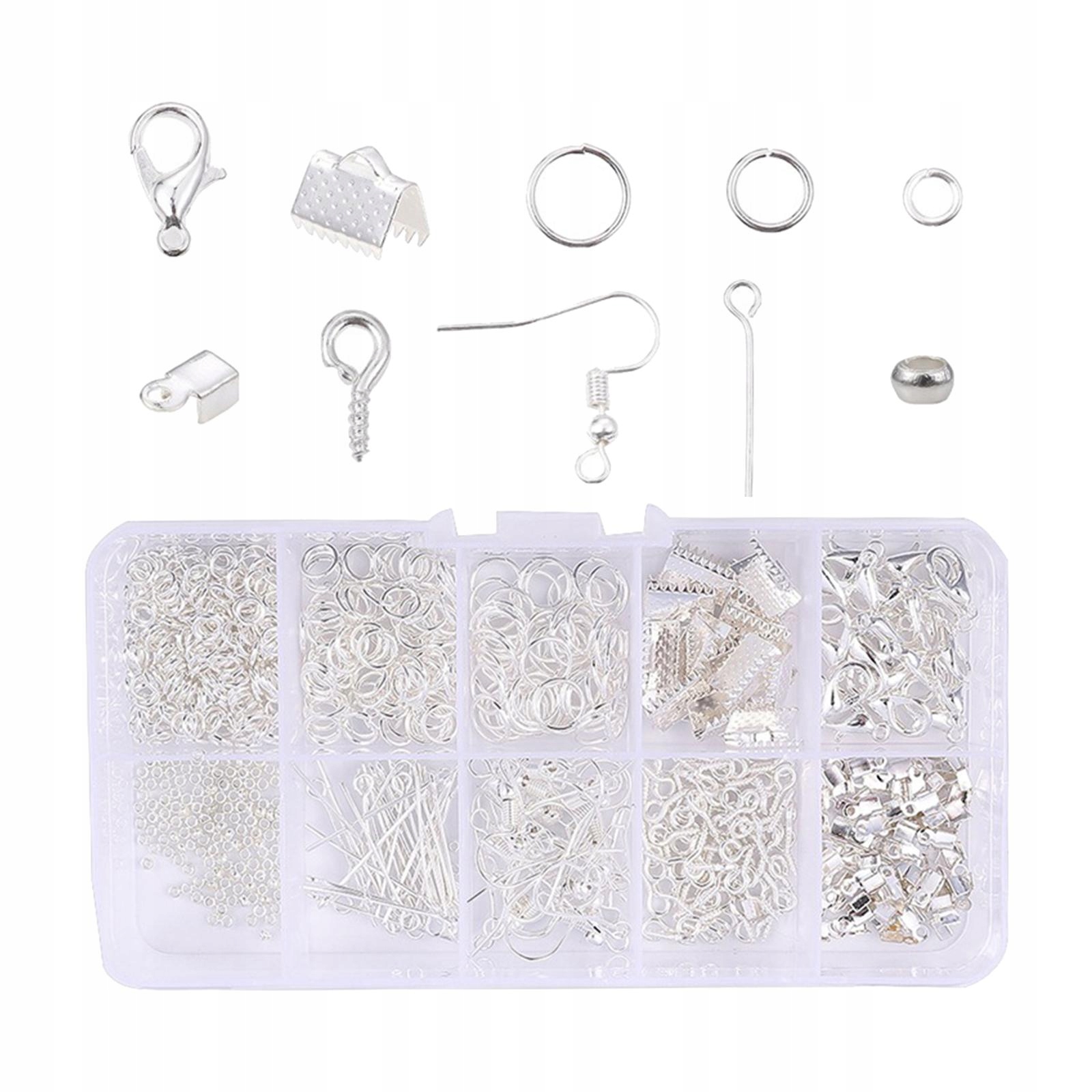 Матеріали для виготовлення ювелірних виробів: він містить 100 * затискачів для стрічки з петлею (3x6 мм), 50 * месенджерів з оком (4x8 мм), 20 * гачків для сережок (20x20 мм), 50 * високих підборів з головою (24 мм), 100 * rinbon beads (2 мм), 20 * вуглеводне кріплення (12 мм. мм), 50 * Кільця відкритих ходів (0,8 х 8 мм), 100 * відкритих кілець (0,8 х 6 мм), 200 * відкриті стрибкові кільця (0,7 х 4 мм). Для щиколотки тощо