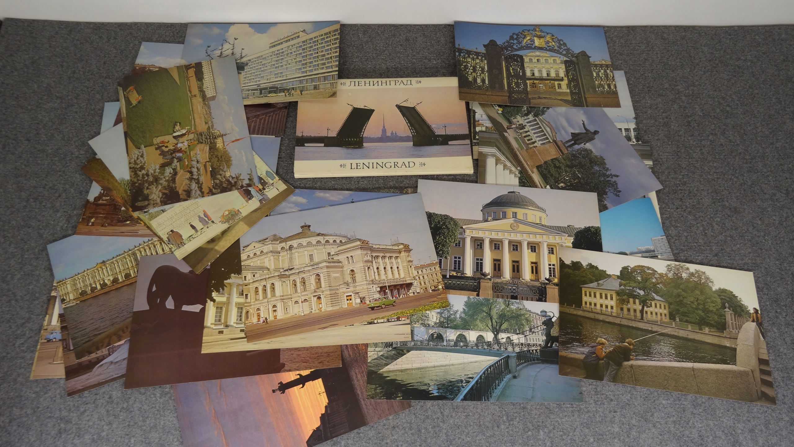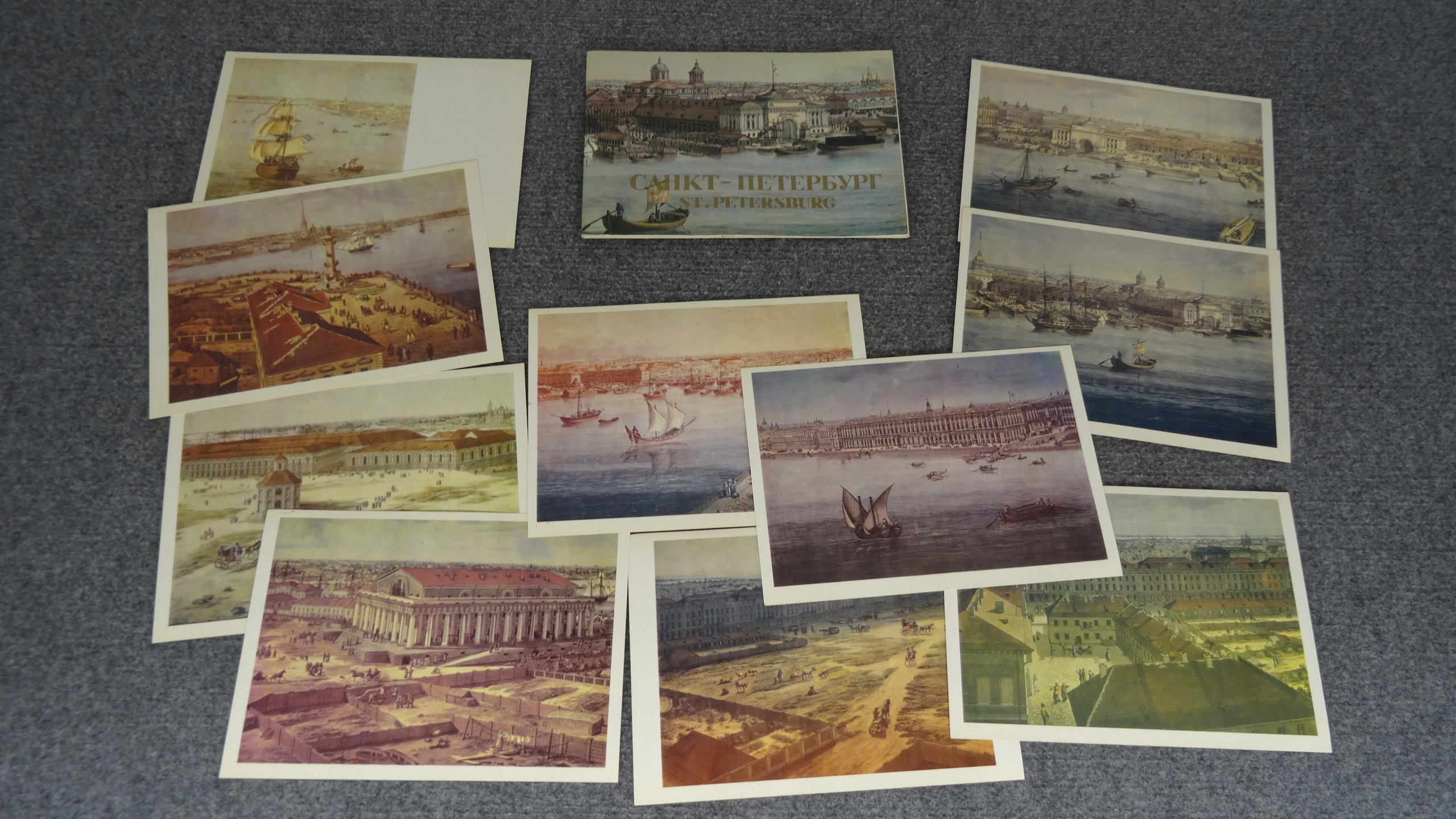 Набір із 11 комплектів зарубіжних листівок в суперобкладинках і гармошках.