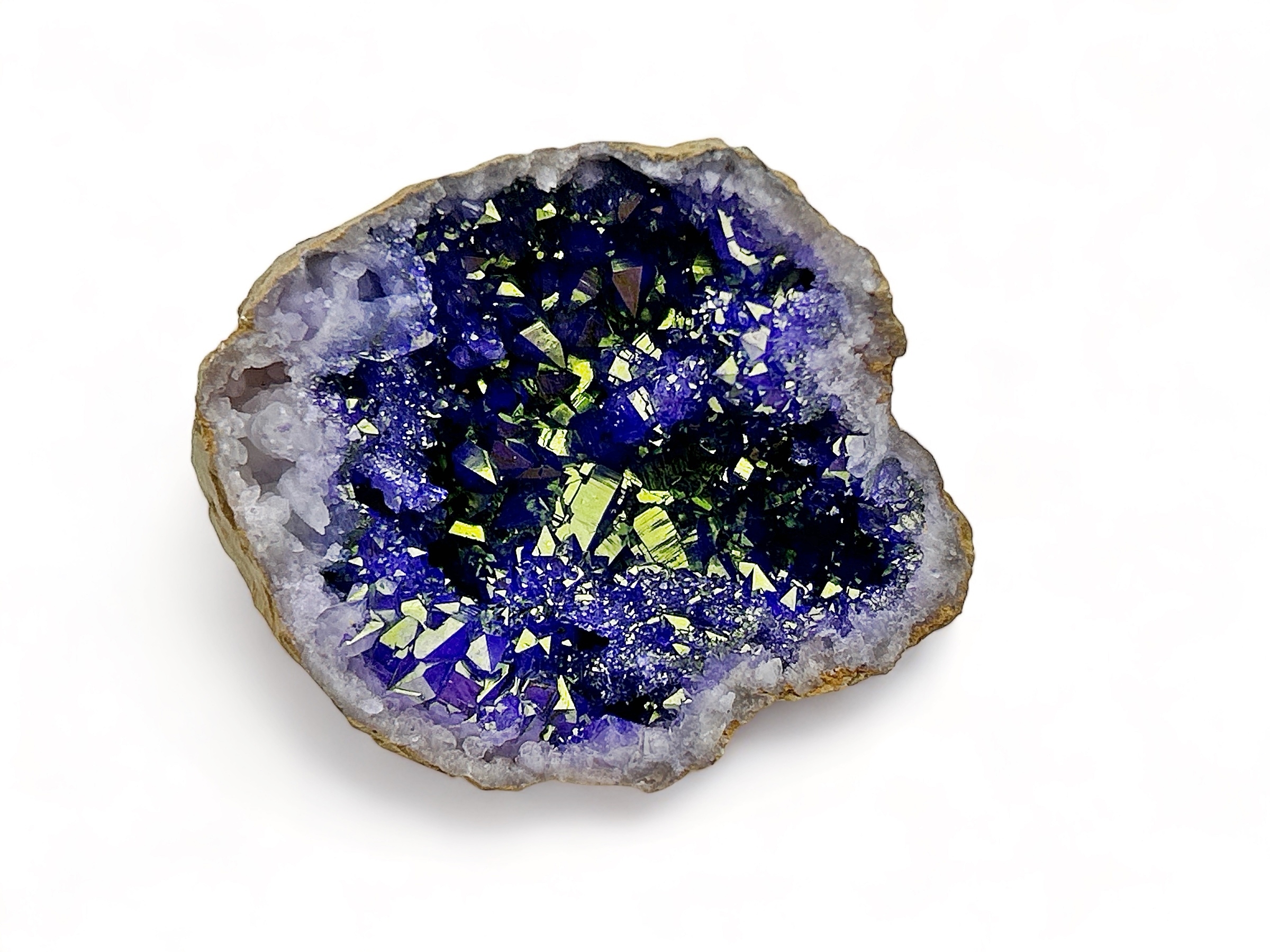 Неймовірно вражаючі кришталеві жеоди — це унікальні предмети, які захоплюють своєю барвистою поверхнею. Ці природні геоди з гірського кришталю були додатково пофарбовані в різні кольори, що робить їх вигляд ще більш вражаючим. Ці камені ідеально підходять для прикраси інтер'єру або в якості подарунка любителям мінералів.