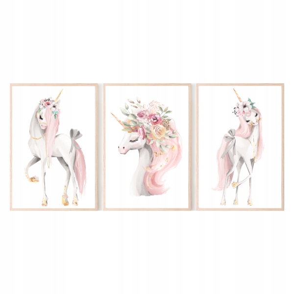 Набір із 3 пастельних плакатів А4 з єдинорогами №1