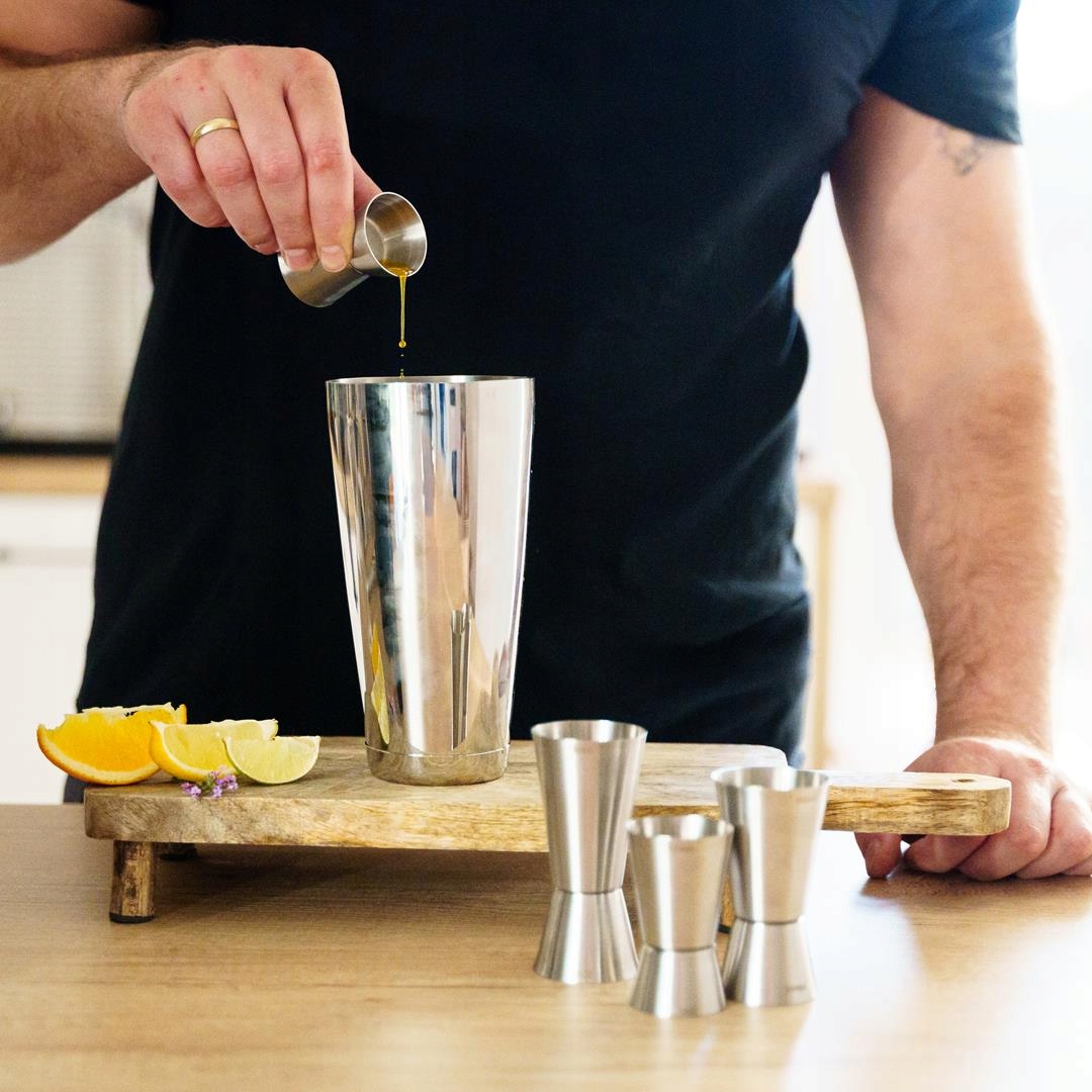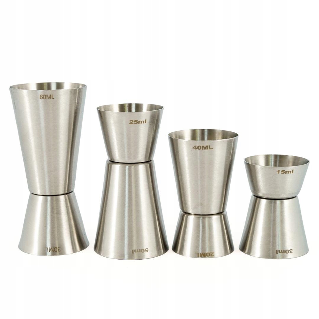 - Набір складається з 4 подвійних заходів для барменів з ємністю: 50/25 мл, 40/20 мл, 60/30 мл, 30/15 мл