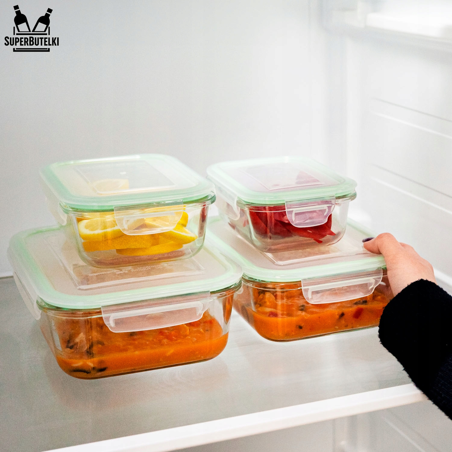 🎒 🍏 Герметичні скляні контейнери для зберігання свіжих 370 мл + 640 мл + 1000 мл + 1500 мл 🍎 🥗
