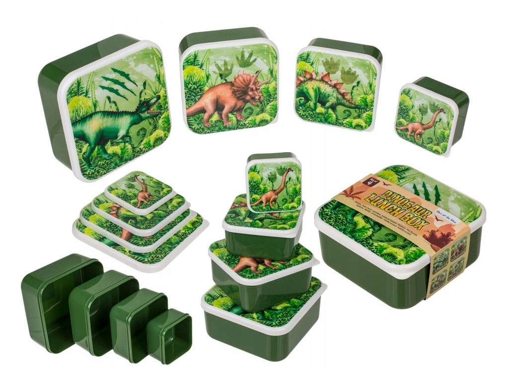 ♻ Нехай кожен день у школі чи в поїздці буде ще приємнішим із набором барвистих контейнерів з мотивом динозавра.