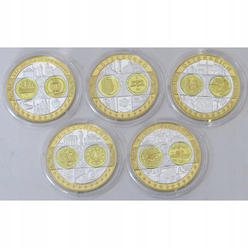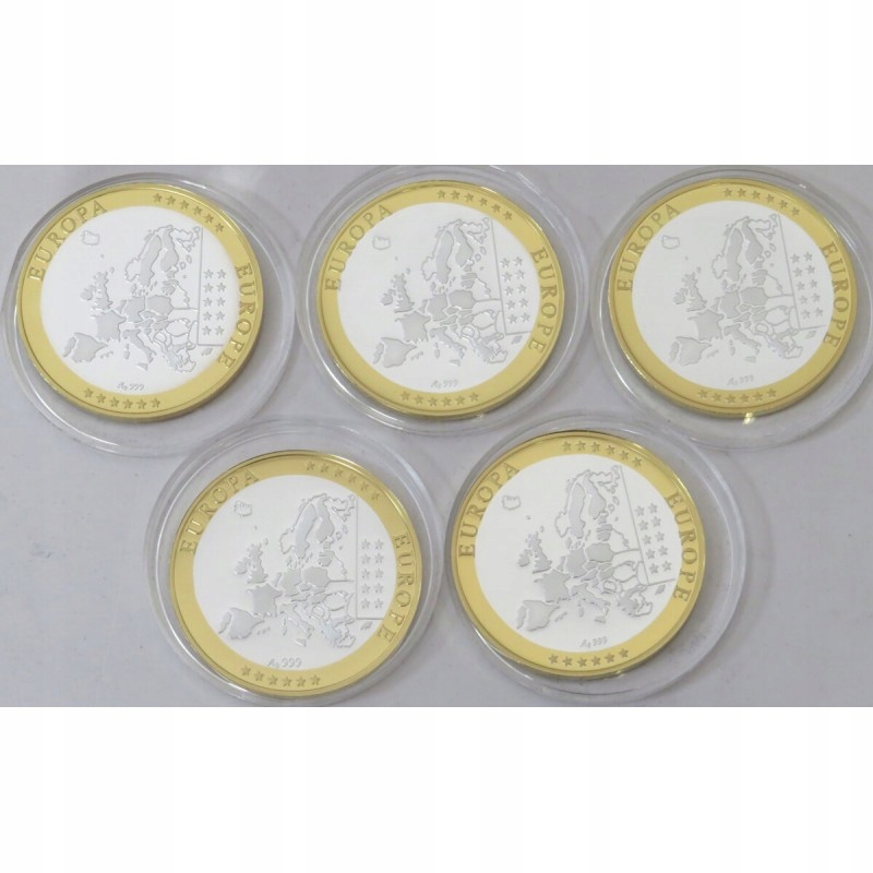 Набір із 5 штук загальної валюти Європи, Ag 999 + коробка