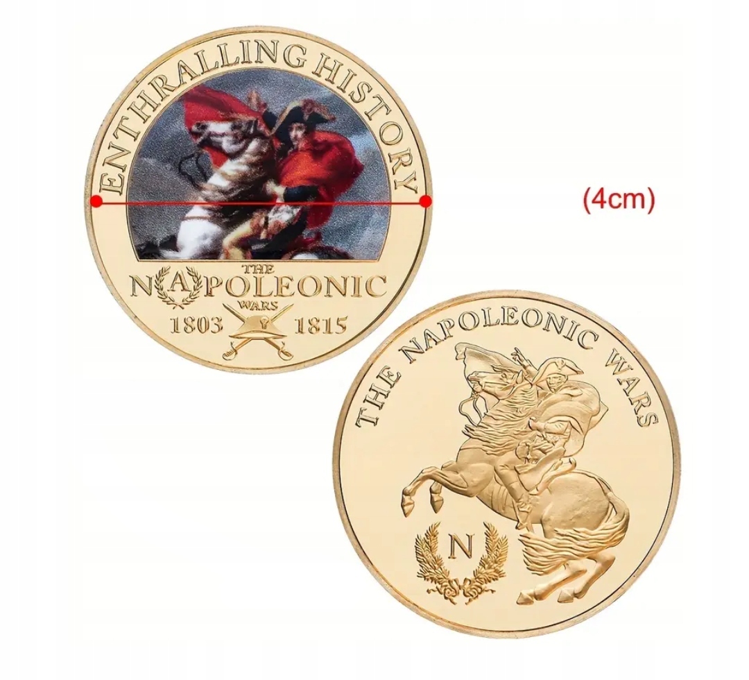 Унікальний набір з 5 пам'ятних монет, присвячених найважливішим битвам Наполеона. Кожна монета виготовлена з міцного заліза і покрита золотим покриттям, а точні малюнки показують ключові історичні моменти.