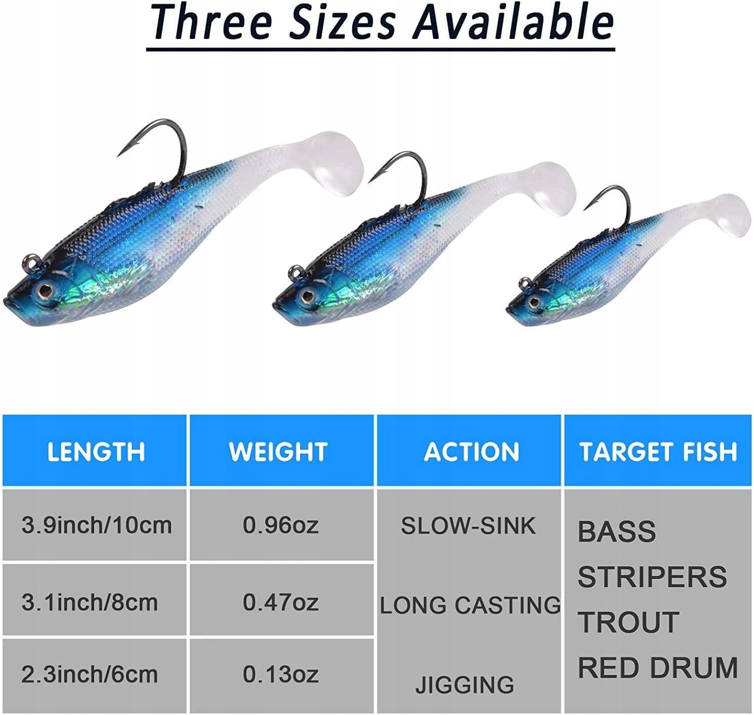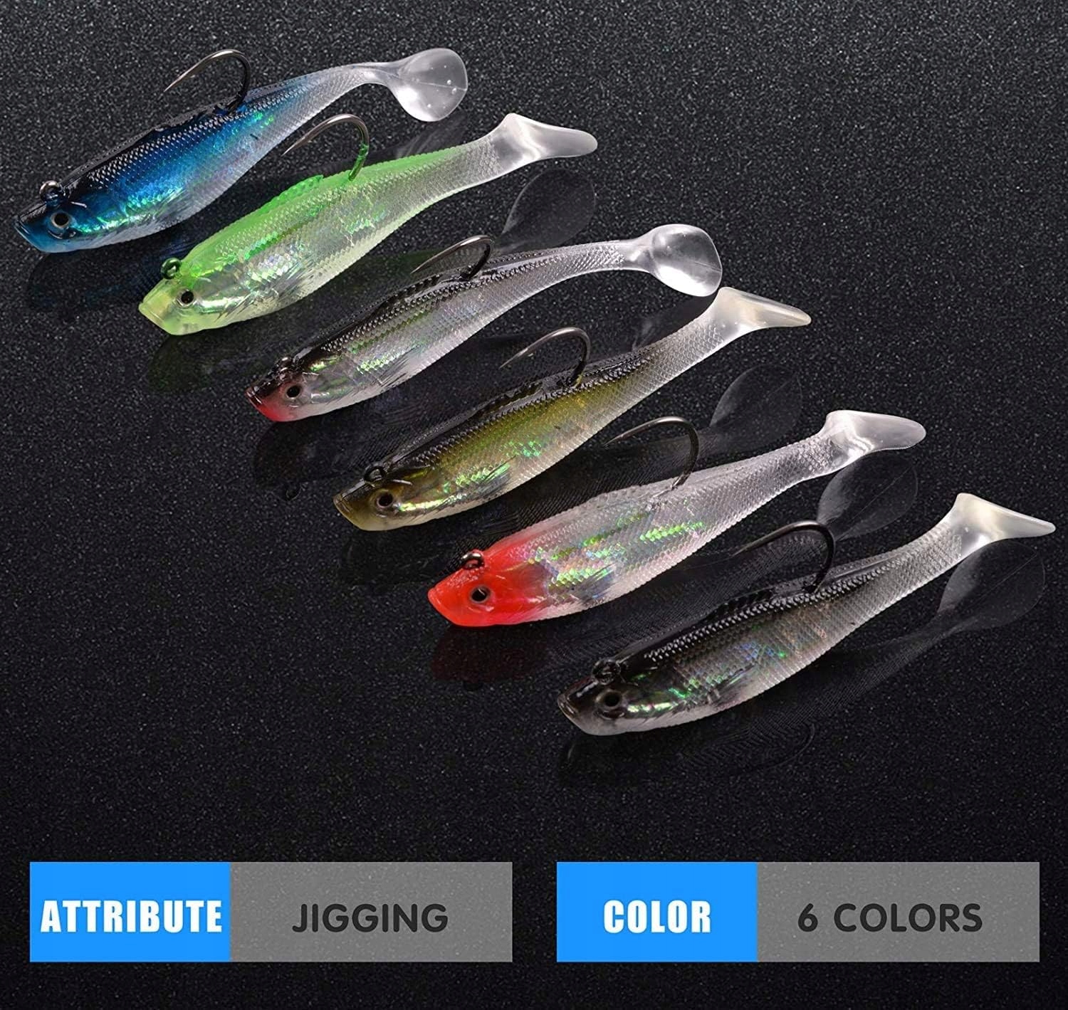 - ✅ Набір гумових приманок: Набір складається з 6 гумових приманок, які ідеально підходять для лову різних видів риб, включаючи судака і окунь. М'які рибальські приманки довжиною 8 см ідеально імітують натуральну рибу, яка приваблює хижаків.