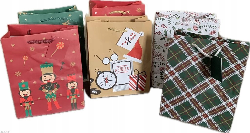 Набір із 6 новорічних подарункових пакетів розміром 17x9x22 см — чудовий вибір для елегантноїі ефектної упаковки різдвяних подарунків. Завдяки святковим візерункам ці сумки створять неповторний, святковий настрій, ідеальні як подарунки для родини, друзів, колег і дітей.