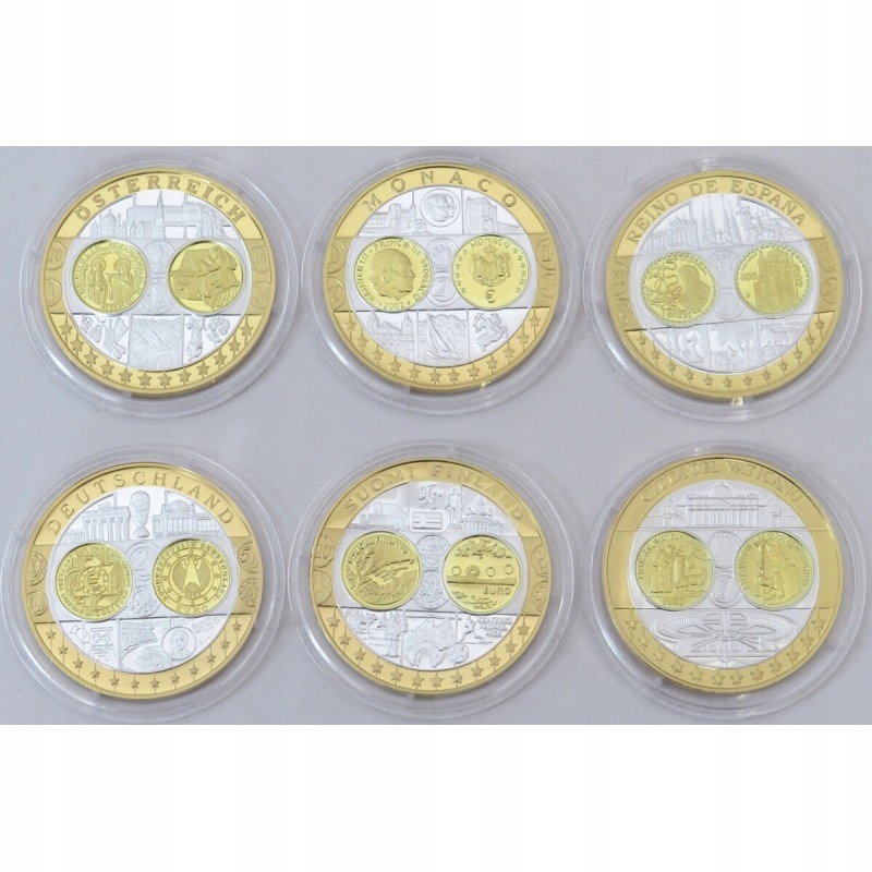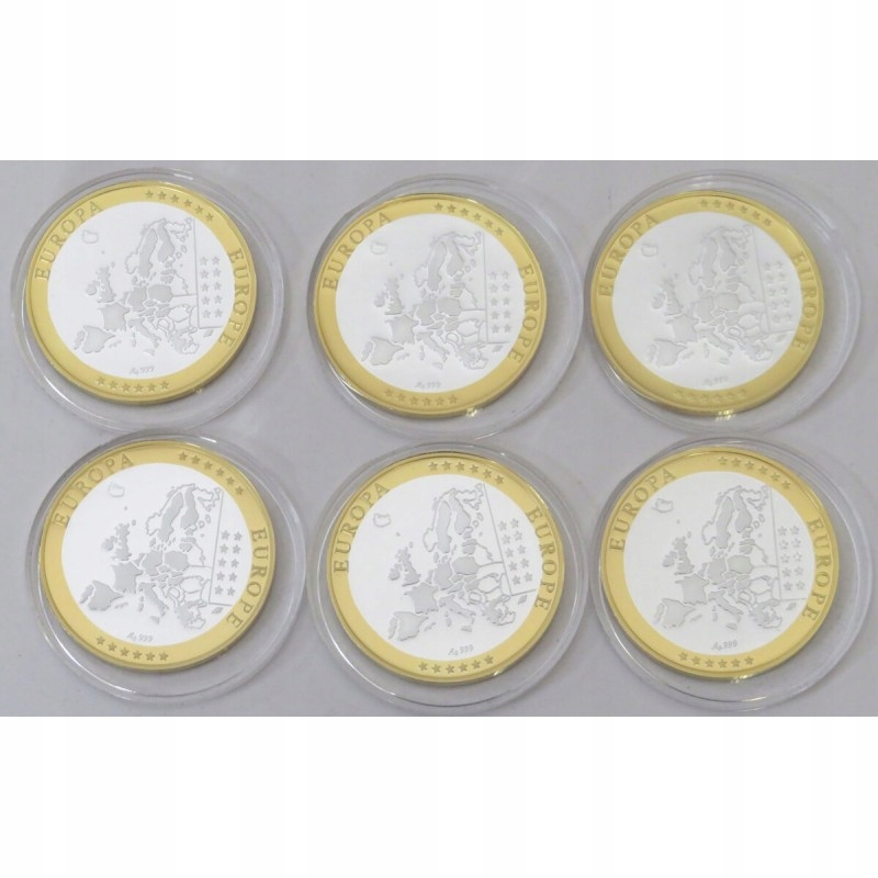 Набір із 6 загальних валют Європи, Ag 999 + коробка