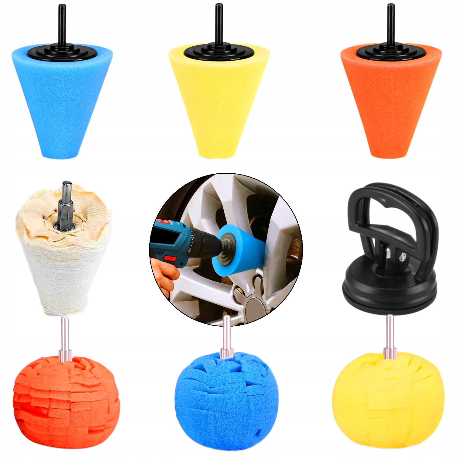 Набір із 7 конічних прокладок для полірування ободів + присосна чашка для вм'ятин